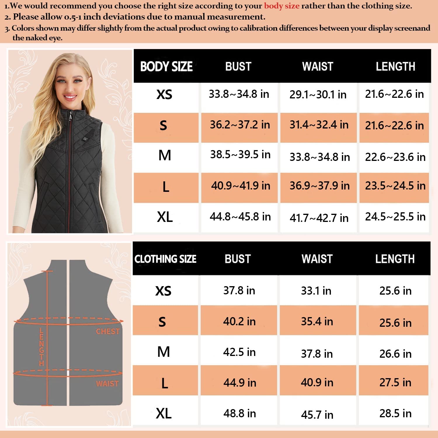 ["5 Heating Zones and 3 Heating Levels: Heated vest for women has 5 heating zones (middle back, left right abdomen, left right waist) with 3 heating levels (Red Light High = 140°F; White Light Medium = 149°F; Blue Light Low = 122°F). Carbon fiber heats up very quickly and keeps you warm within 5 seconds","Extremely High Capacity mAh: Kintiwe heated vest with its 12000-mAh battery and a runtime of up to 10 hours, this heated jacket provides strong support in cold weather. (Low temperature: 10 hours; Medium temperature: 6.5 hours; High temperature: 4.5 hours)","Thoughtful and unique: The side zipper is adjustable to fit you better. This women's heating vest is battery operated to give you more energy in cold weather. The heated vest has two side zipper pockets to securely and reliably protect your valuables","Multifunctional vest: You only need to press the button for 2-3 seconds, then the Heated Jacket starts heating up. This heating vest is a great companion for fishing, camping, hiking, hunting, and more. It's practical for activities like walking the dog, cycling, or running","Quality Assurance: Kintiwe Heated Vest for Women comes with a 12-month warranty and friendly customer service. This men's heating vest is made of soft material that feels comfortable and makes a great gift for seniors, family members, lovers, friends, or yourself"]