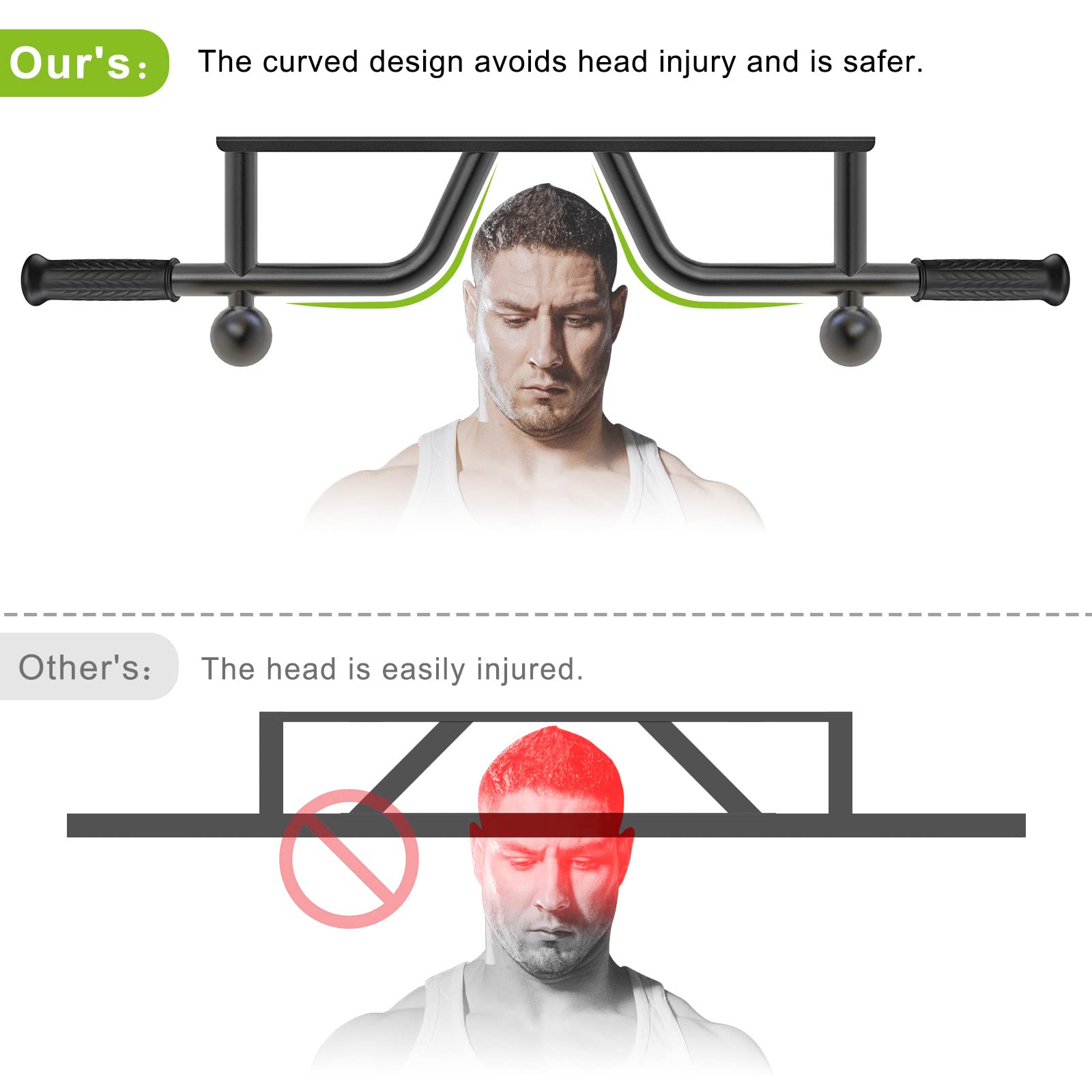ăHeavy Duty and StableăMade of 1 3/10" durable steel tubing, this pull-up bar can support up to 440 lbs and withstand years of use. The 6-hole design ensures more stability and safety than other wall-mounted bars.","đ