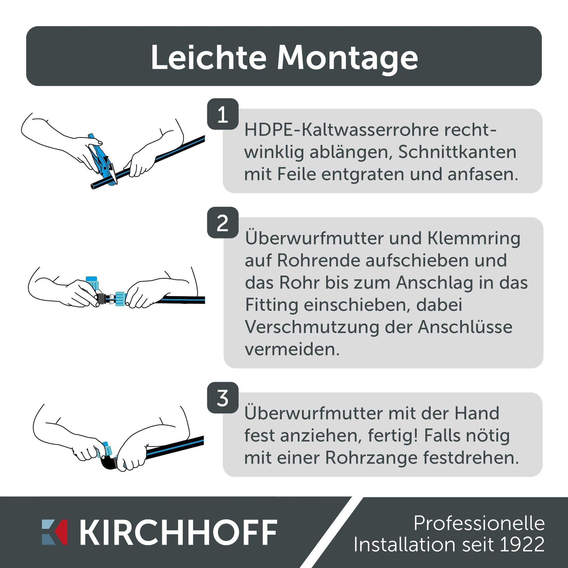 Kirchhoff Fitting Connection Angle 90° | Plastic | 25 x 25 mm | for HDPE pipe | 3 pieces in a set | Various sizes | DVGW certified | Drinking water quality | Made in EU, Black, 25 mm, 984845217-3