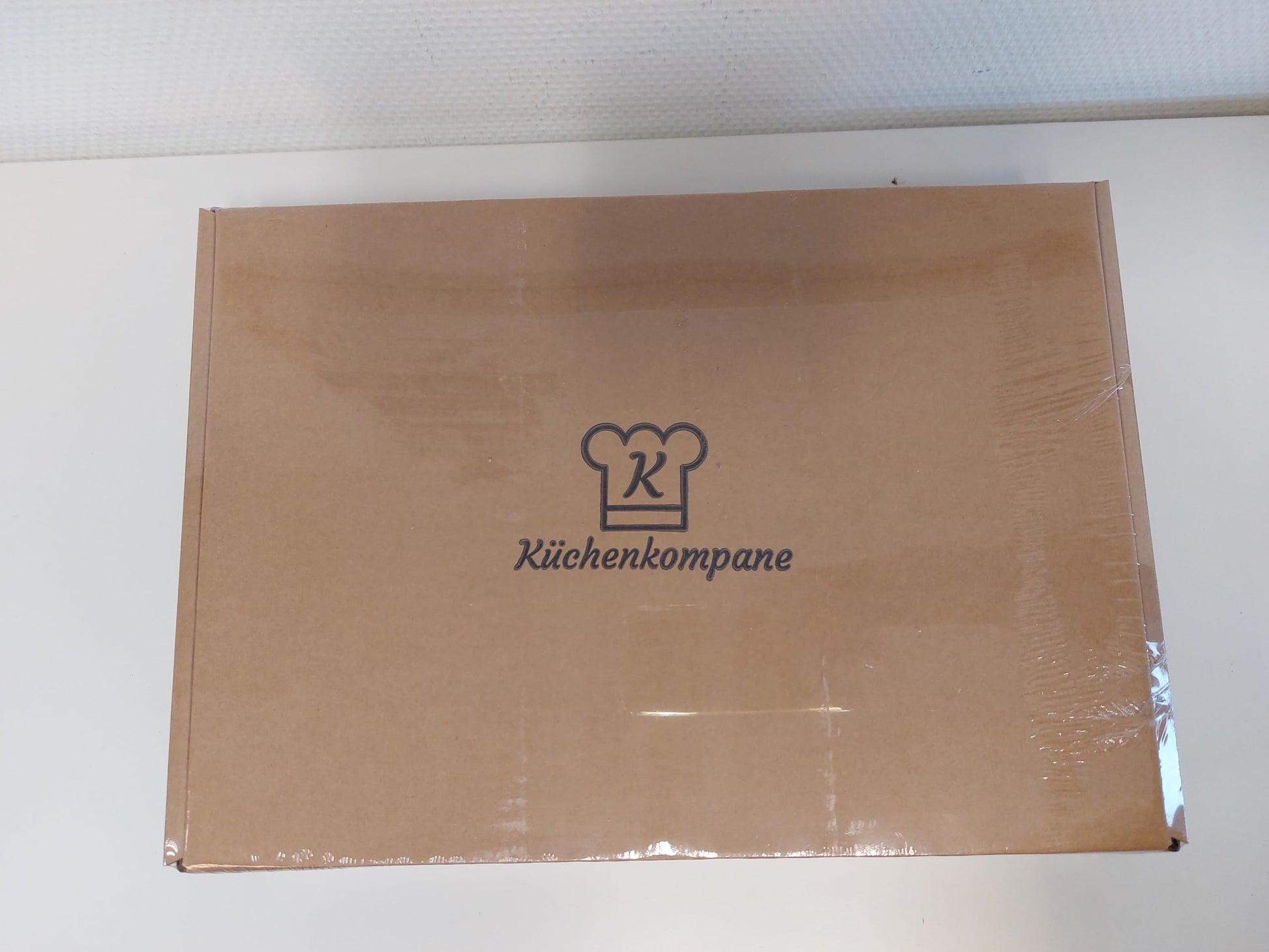 ["Complete 8-piece knife set for all kitchen tasks - includes chef's knife, bread knife, Yanagiba knife, Nakiri knife, Santoku knife, fillet knife, petty knife, and vegetable knife. Perfect for precise cutting tasks, whether for beginners or professional chefs.", "High-quality stainless steel with damascus pattern - crafted from 7CR17 stainless steel with a hardness of 60±2 HRC and 15° sharpening angle. Each knife is laser-finished for long-lasting sharpness and an aesthetic design.", "Ergonomic and non-slip Pakkawood handle - the ergonomic handles made of Pakkawood provide comfort and safety during every cutting motion. Ideal for extended use without fatigue.", "Perfectly organized with gift box - the knife set comes in an elegant gift box, making it the perfect choice as a gift for hobby chefs, professionals, or special occasions like Christmas and birthdays.", "German quality and risk-free shopping - since 2009, Küchenkompane has stood for precision and durability. With our 30-day money-back guarantee, you can order worry-free and experience German quality."]