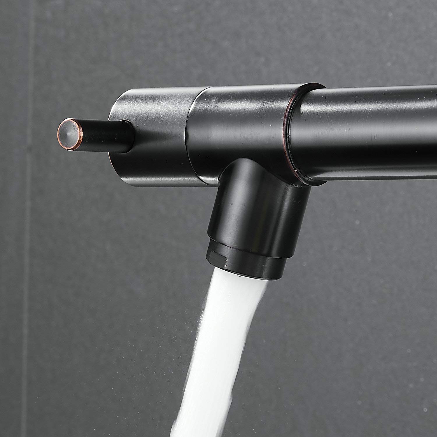 Kitchen faucet black, 360° rotatable sink faucet with pull-out spray, two spouts, spiral spring