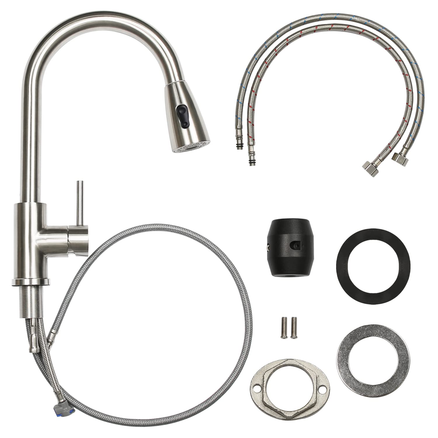QUALITY MATERIAL: The retractable kitchen faucet is made of high-quality stainless steel. It is corrosion-resistant, scratch-resistant, and lead-free. Equipped with ceramic cartridges that provide good sealing and leak protection, it is a great helper in the kitchen.