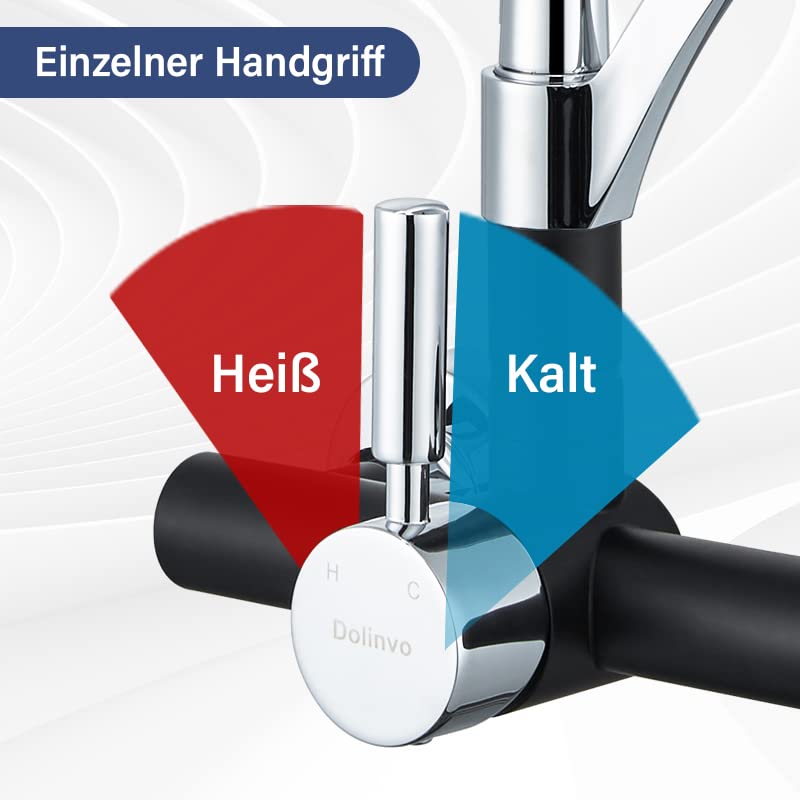 Kitchen faucet Wall-mounted sink faucet Black, Dolinvo Kitchen faucet Wall-mounted with 360° swivel, Single lever sink mixer tap wall-mounted faucet, Scald protection silicone cover.