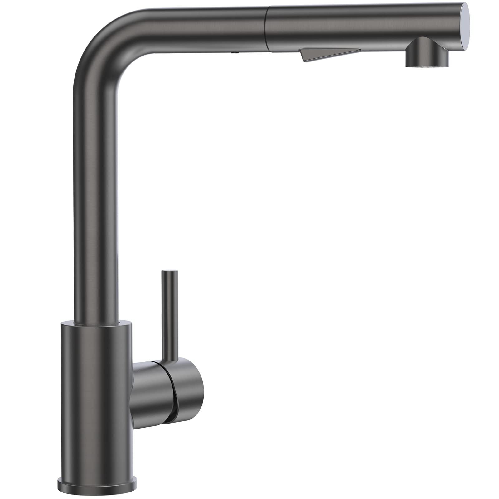 Kitchen faucet with pull-out spray, CECIPA high-pressure kitchen tap, kitchen mixer with 2 spray modes, single handle sink tap in brushed stainless steel, 360° swivel, gray black.