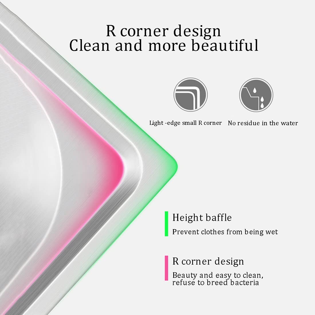 "Stainless steel sink with hot and cold water faucet. With streamlined, rounded corners and edges, no dead corners, with faucets and water inlets for daily cleaning, the spacious countertop provides you with enough space to dry everything from utensils, plates to pots and pans in the pot.