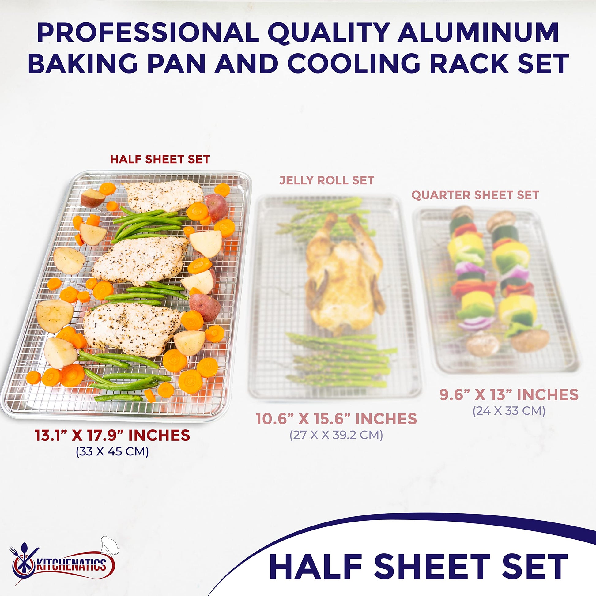 KITCHENATICS Half Sheet Pan with Rack Set, Oven Baking Tray, Aluminum Pan with Rim, Wire Cooling Rack for Cooking and Roasting, Half Baking Sheet with Baking Rack - 33.3 x 45.5 cm