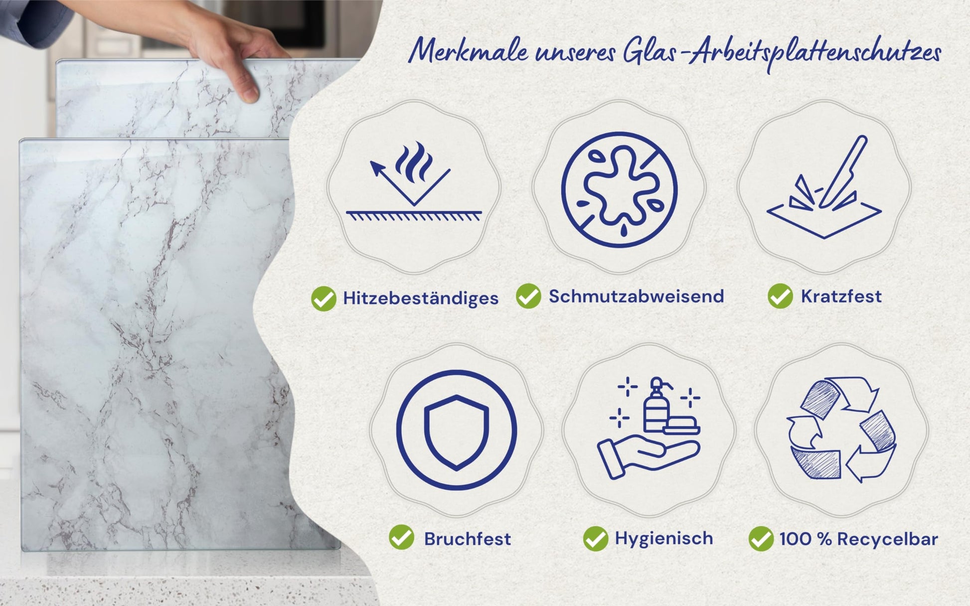 Kitchenville Glass Cutting Board 40x30cm - Hygienic cutting board made of tempered glass - Heat resistant, scratch resistant & non-slip - Glass plate for the kitchen - Grey marble look