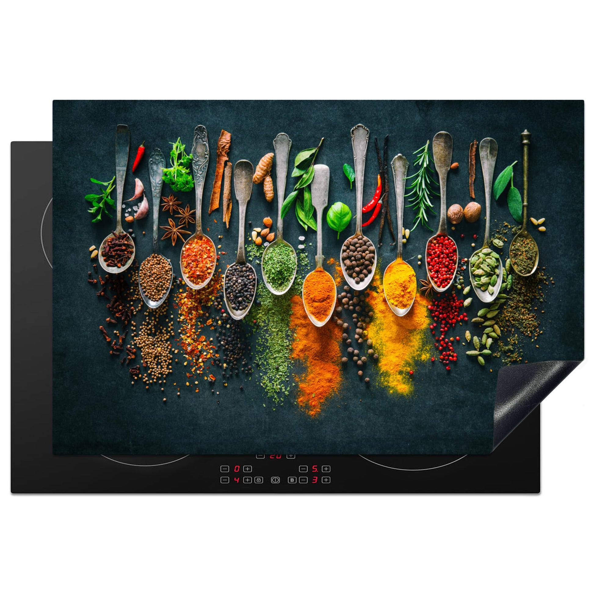 KitchenYeah© stove cover One-piece glass ceramic hob cover for induction protection ceramic hob cover vinyl stove covers herbs - spices - spoon - pepper - 78x52 cm