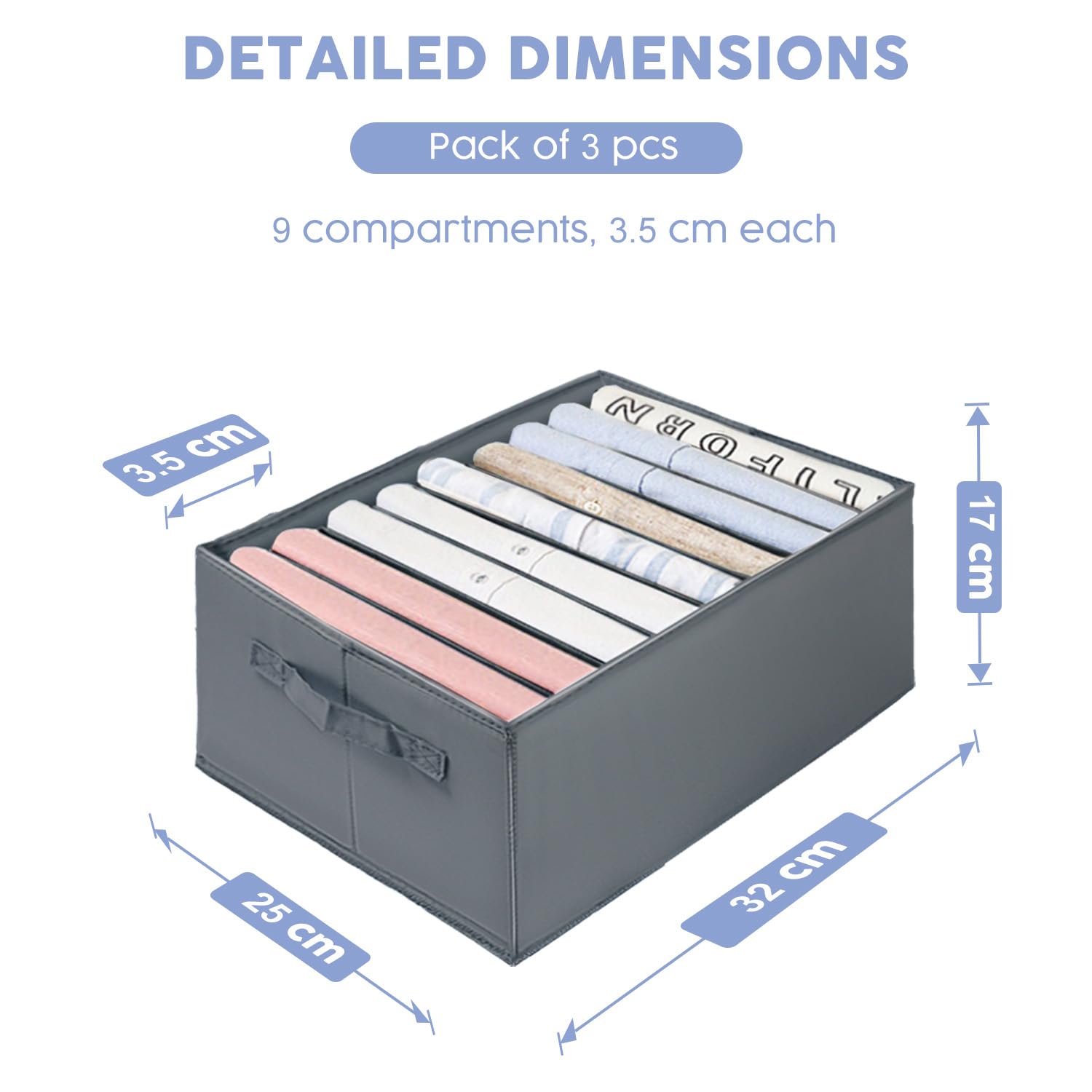 👔【Multiple Compartments & Stackable】Our closet organizers have nine 1.6 inch storage compartments, allowing you to store your clothes neatly. The durable material is stackable, doubling the storage space in your wardrobe.