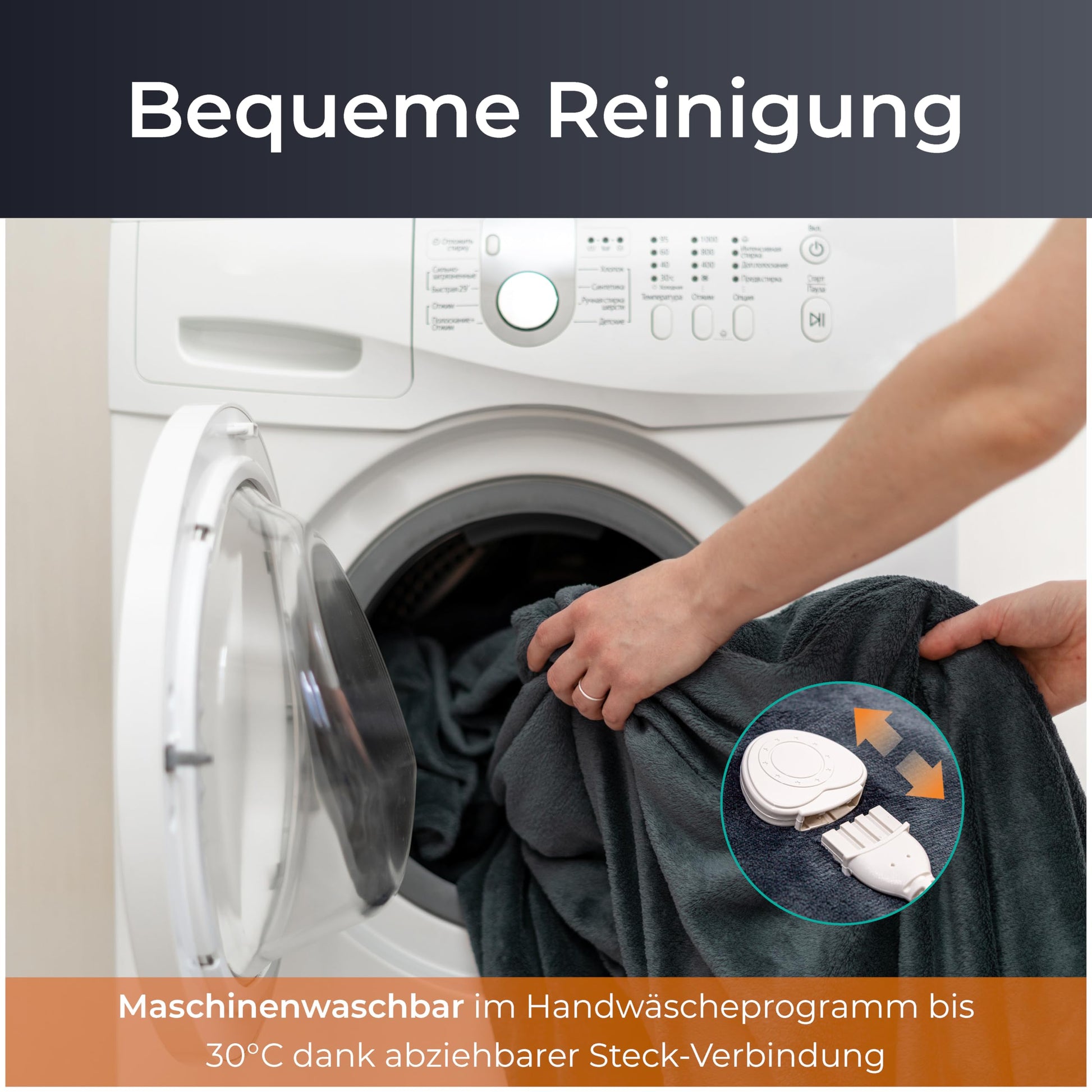 Effortlessly Washable: The heated blanket can be easily cleaned up to 30°C in the hand wash cycle of your washing machine. This way, it remains hygienic and fresh even with intensive use.