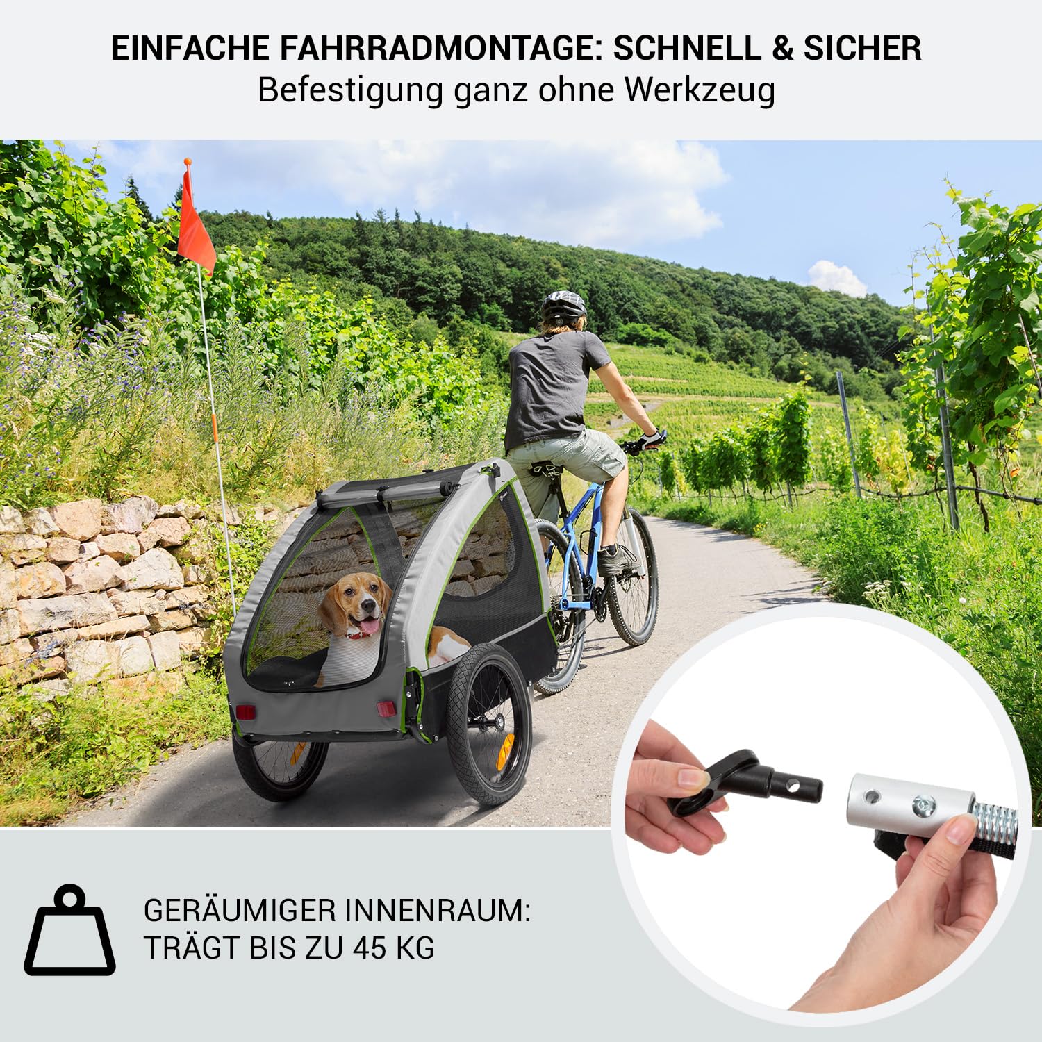Klarfit 2-in-1 bike trailer & dog buggy, foldable, dog trailer with suspension, reflectors & leash, for dogs up to 45kg