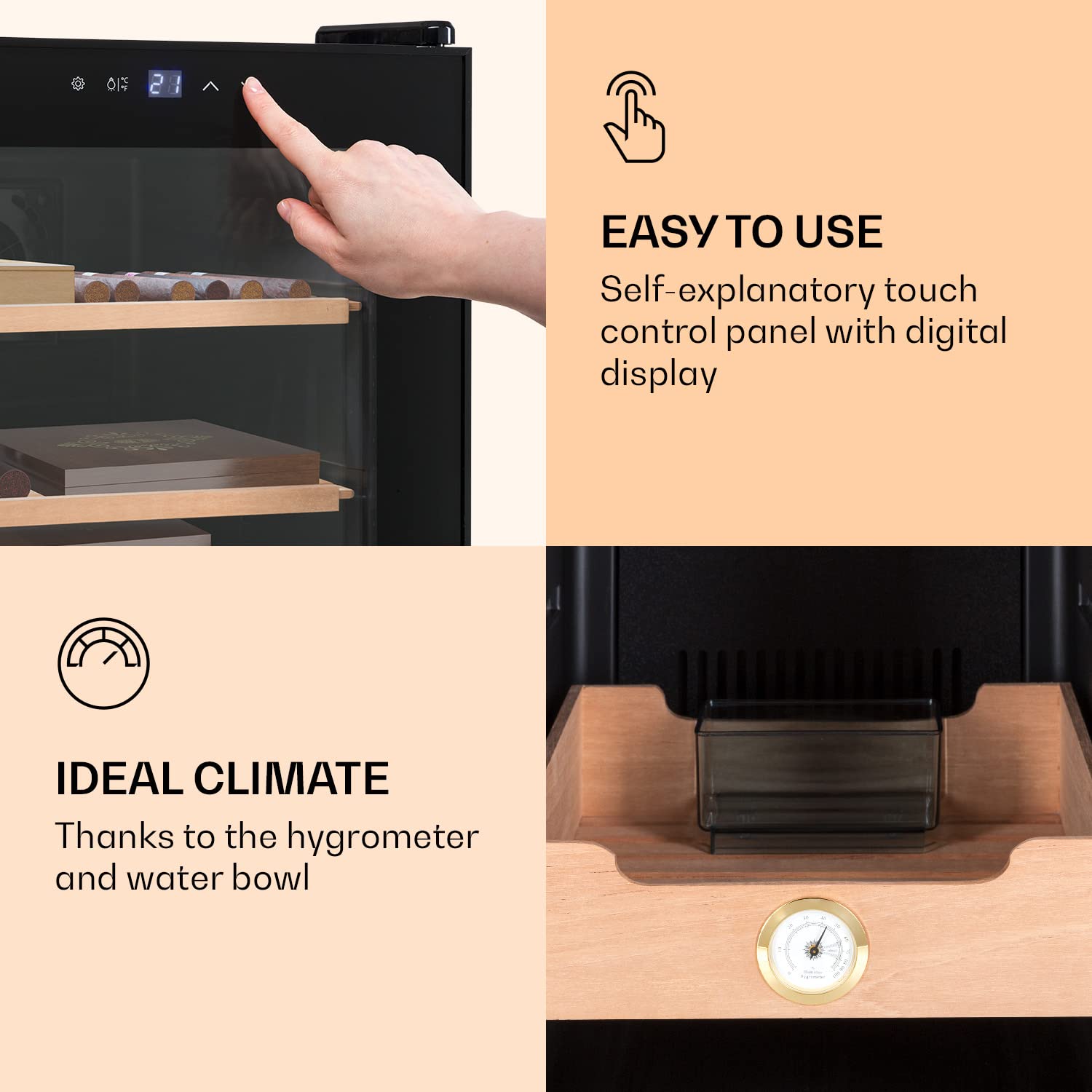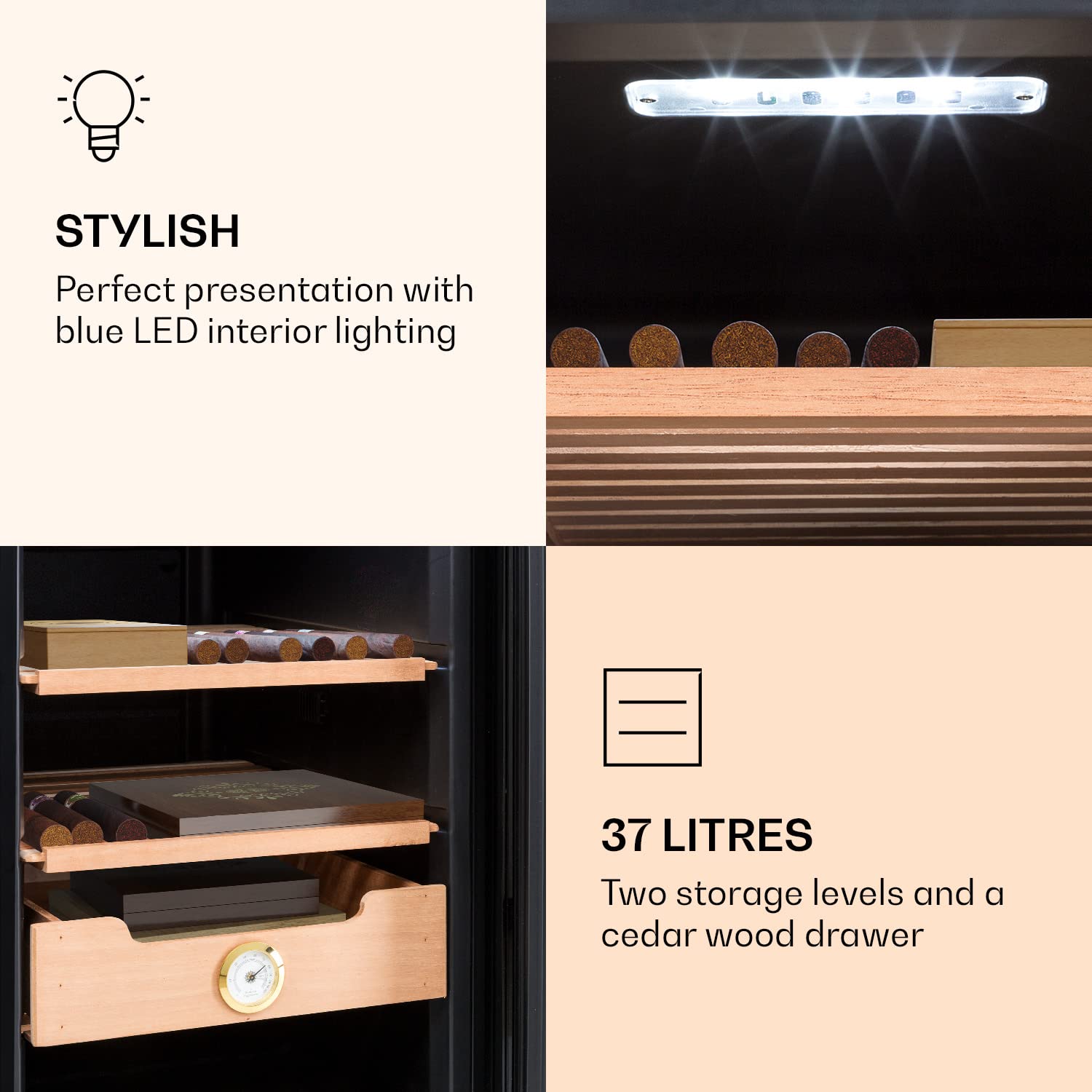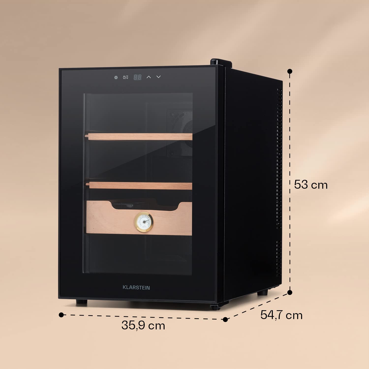 Klarstein El Presidente Cigar Humidor - thermoelectric humidor cabinet with glass door, cedar wood trays, hygrometer, LED interior lighting, 37 liters, black