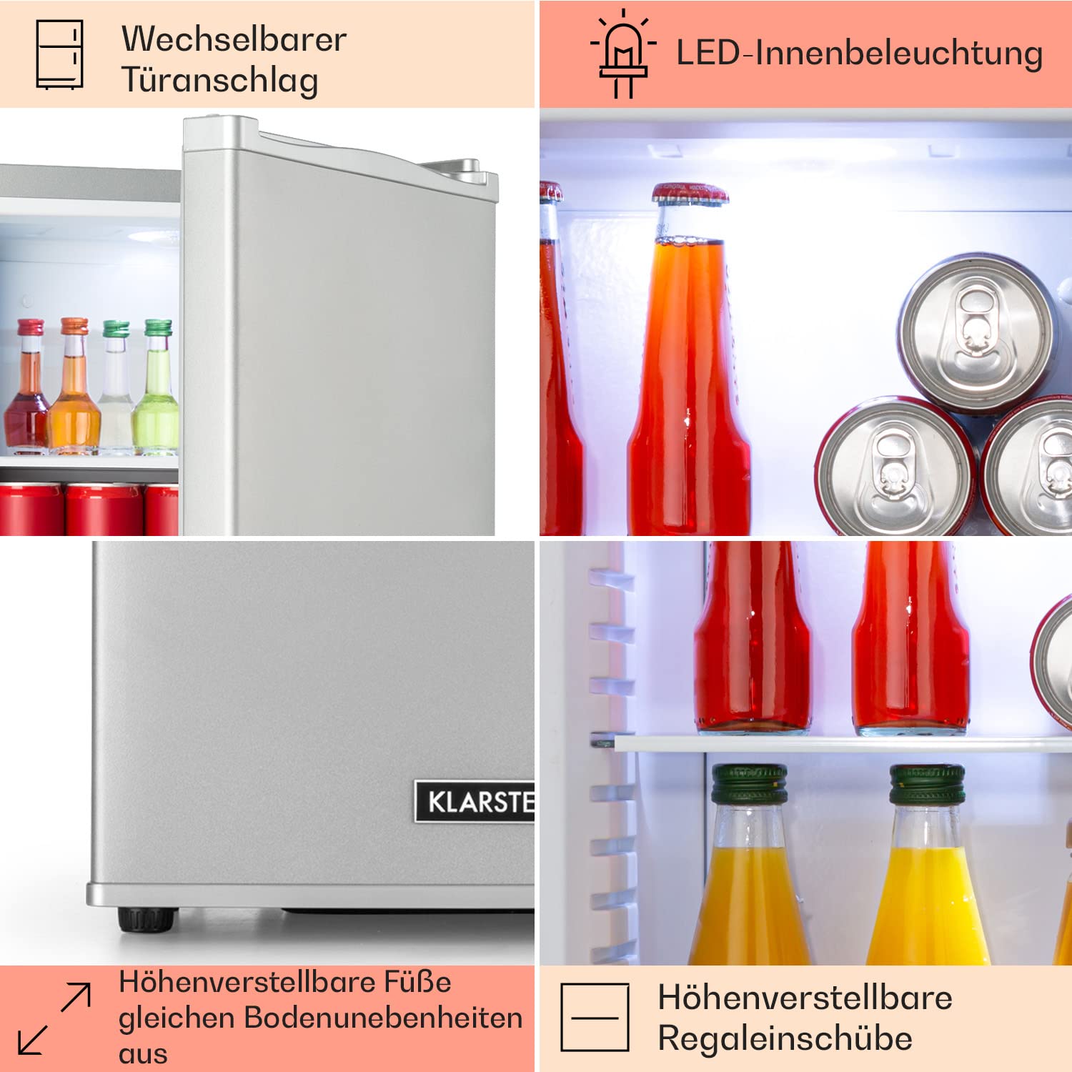 "ELEGANT AND COMPACT: With this mini fridge for your room or office, you have everything at your fingertips. Despite its small footprint, this 13-liter fridge has enough space for beer, alcohol, snacks, skincare products, etc."