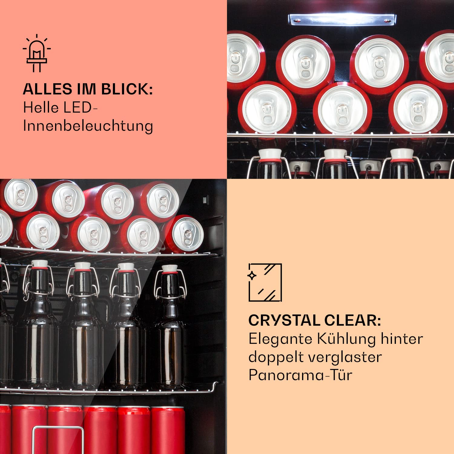"QUIET AND NON-DISRUPTIVE: Thanks to the extremely quiet motor, our indoor/outdoor fridge cools drinks silently. The Klarstein fridge has 2 removable shelves and space for large bottles, cans, and more."