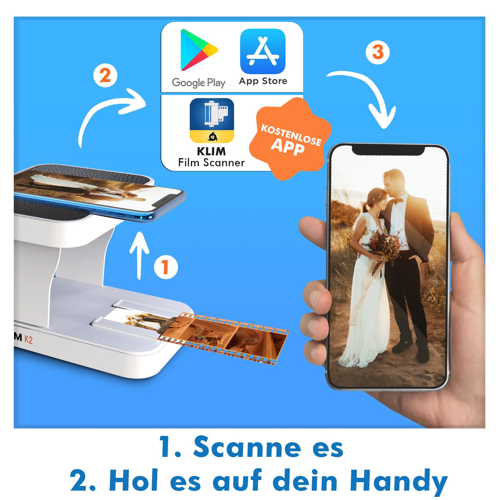 KLIM K2 Mobile Film Scanner 35mm + NEW + Positive & Negative Slide Scanner + Photo Scanner for digitizing + Slide Scanner + Your own development station at home + Digitize slides yourself.
