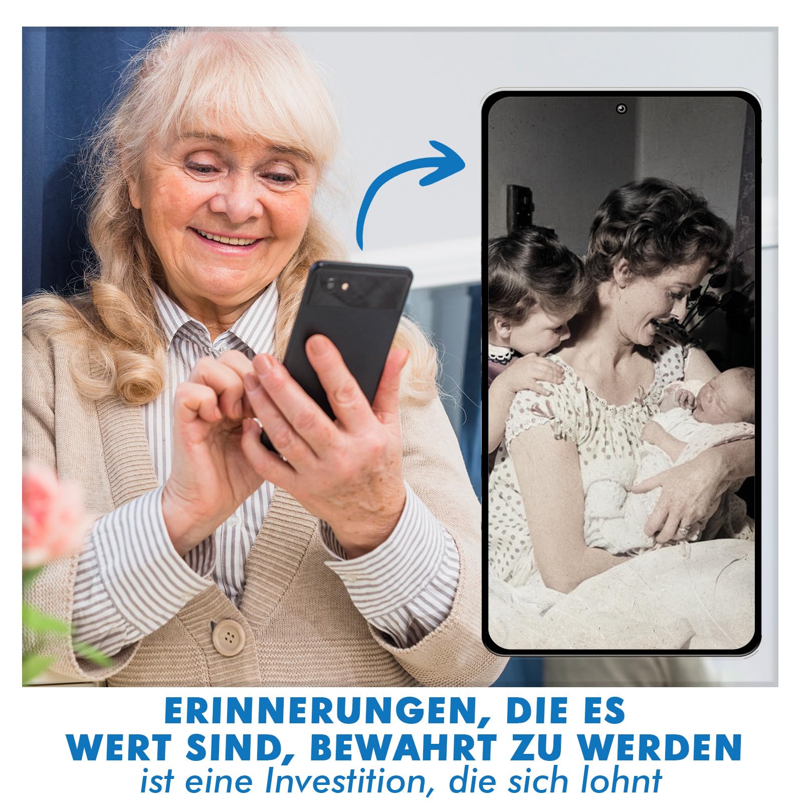 ["KEEP YOUR VALUABLE MEMORIES DIGITALLY PRESERVED. Preserve your analog films and slides before they disintegrate into dust in your attic! This easy-to-use, foldable film scanner allows you to view, scan, convert, and digitize old films and slides in just minutes, all onto your smartphone.", "FOR ALL YOUR OLD PHOTOS. The K2 Film Scanner provides the most cost-effective and easiest way to scan your old film directly onto your smartphone. The K2 photo scanner is compatible with 35mm black and white, color negatives, color slides, and even includes batteries, a cleaning cloth for your film, and a magnet for larger phones.", "FREE APPS. Say goodbye to complex scanners, paid subscriptions, or expensive development services. With the K2 Mobile Film Scanner, you have your very own development station at home to digitize your films and slides using free apps. We provide an easy-to-understand guide with detailed instructions for using each recommended free app.", "EASY TO USE. This portable device is as easy and affordable as it gets! 1. Simply unfold the K2 film and slide scanner, 2. turn on the LED light (batteries included), 3. insert your film or slides into the mini projector, 4. Place your phone on top, 5. launch one of the apps listed in the manual and follow the on-screen instructions.", "KEEPING VALUABLE MEMORIES IS ALWAYS A GOOD INVESTMENT. Think about it: How much is the content stored on that film worth to you? We made sure that the number you have in mind is much higher than the price of the K2 Film Scanner: a small investment that pays off.", "DURABLE. We use only high-quality components designed for long-lasting use, so you can trust that you'll be able to use this product for many years to come. If you ever encounter any issues, our product is covered by a 5-year protection plan. And if you're not satisfied with the product, you can return it within 30 days at no extra cost and receive a full refund. A completely risk-free purchase!"]