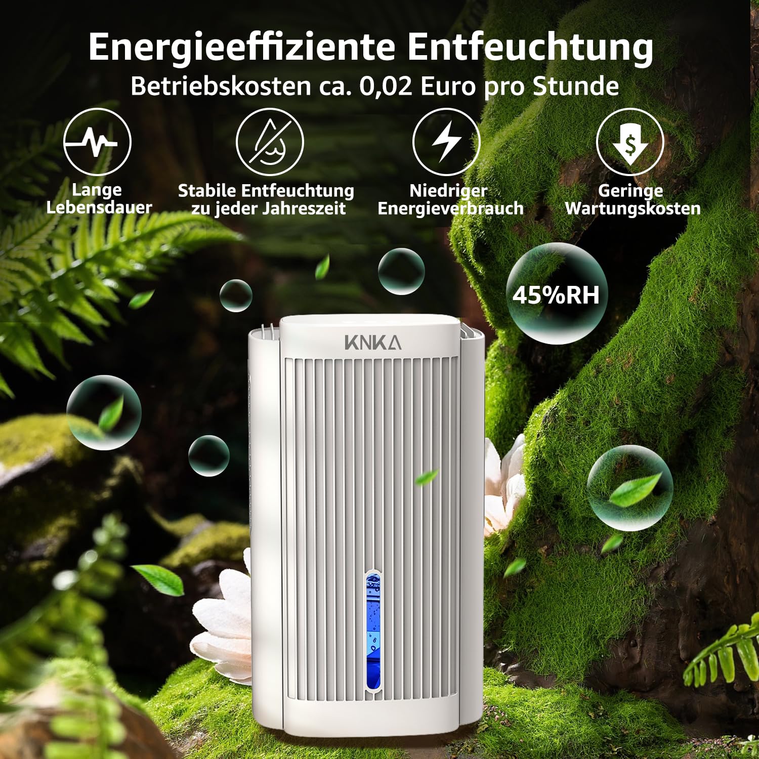 Low Energy Consumption and High Efficiency - The operating costs of our electric dehumidifier are approximately $0.02 per hour, significantly reducing costs, and it requires no regular maintenance. In addition, the automatic defrost function of the KNKA dehumidifier ensures a longer device lifespan and efficient dehumidification even in seasons with fluctuating temperatures, allowing you to live in a comfortable environment throughout the year.