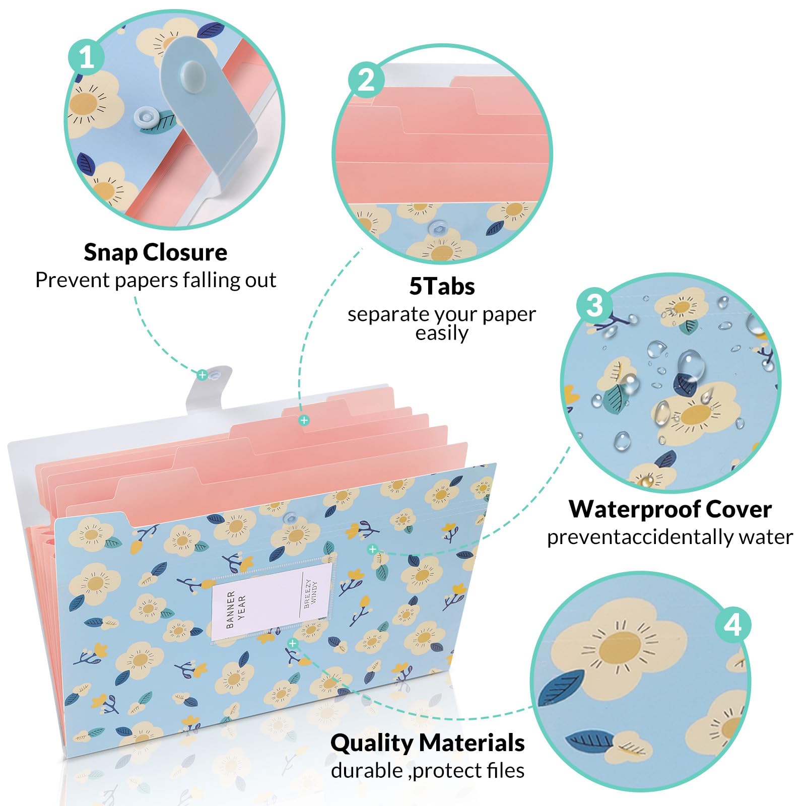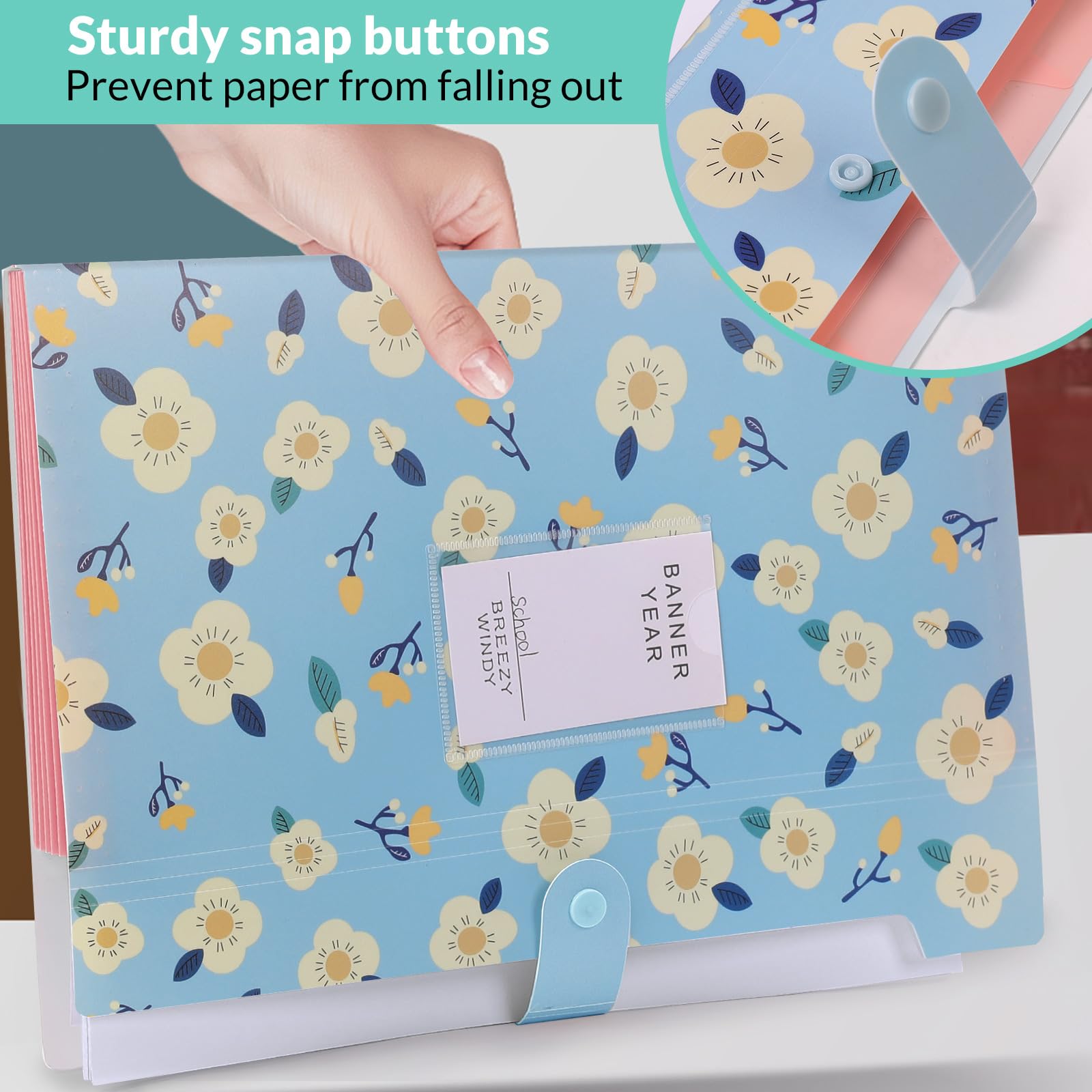 ["With adhesive labels: Each pocket in this A4 folder can be labeled with customizable stickers for classification, allowing you quick access to your various documents.","High-quality material: The expandable file folder is made of high-quality and very durable polypropylene (PP). The pocket folder is waterproof, expandable, and durable, difficult to break or deform, and keeps your documents in good condition.","6 pockets: Folder with compartments, product size: 12.7'' x 9.6'' x 0.7'' (LxWxH) / 32.2 x 24.3 x 1.78 cm. Archives over 180 sheets in A4 format. 6 individual expandable pockets make file access easier.","Portability and versatility: The file organizer can store various items such as papers, receipts, cards, coupons, etc. An A4 folder with compartments is an essential helper in the office, at home, in the office, at school, or while traveling.","Secure snap closure: The convenient snap closure ensures that your documents stay securely in place and do not fall out, even during transport.","Efficient organization: The numerous compartments and colored labels allow for systematic and clear storage of your documents, so you can always have quick access to your records.","Sturdy protection: Thanks to the high-quality material and waterproof surface, your important documents are always protected from moisture, dirt, and damage.","Convenient and portable: The lightweight and compact design makes the folder easy to carry and transport, allowing you to take your documents anywhere.","Practical and portable: The lightweight and compact design enables easy transport, so you can take your documents anywhere.","Students and pupils: Perfect for managing notes, homework, and projects to make studying or school life more efficient."]