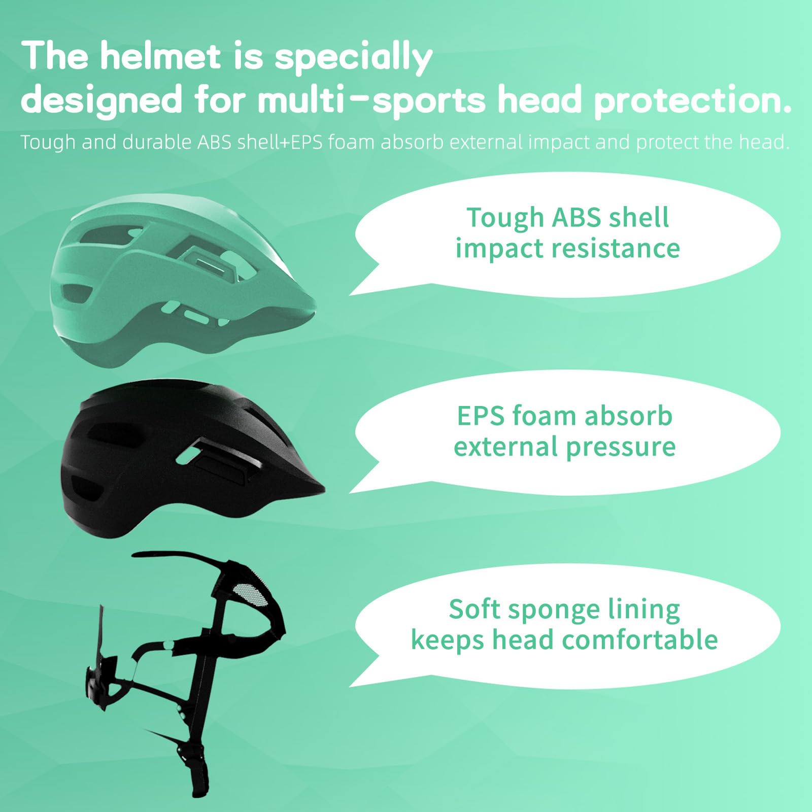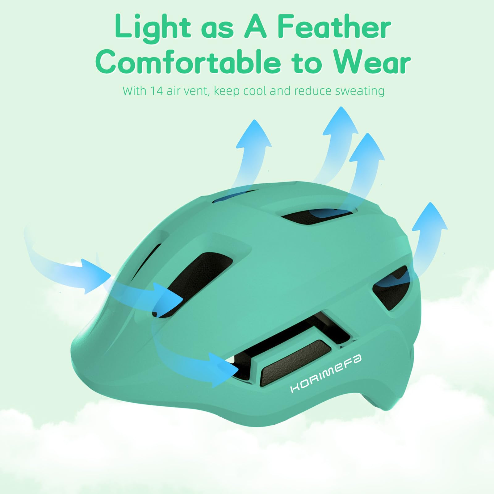 🚴ADJUSTABLE: KORIMEFA sports helmet features two adjustable straps and buckles for safety and size adjustment, making it flexible for children of all sizes and able to accompany the growth of children.