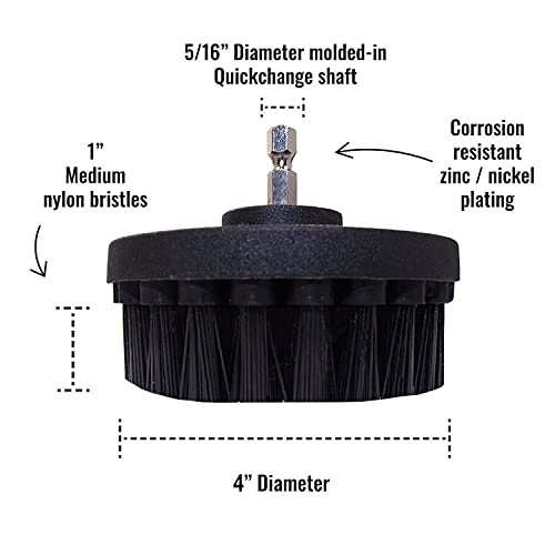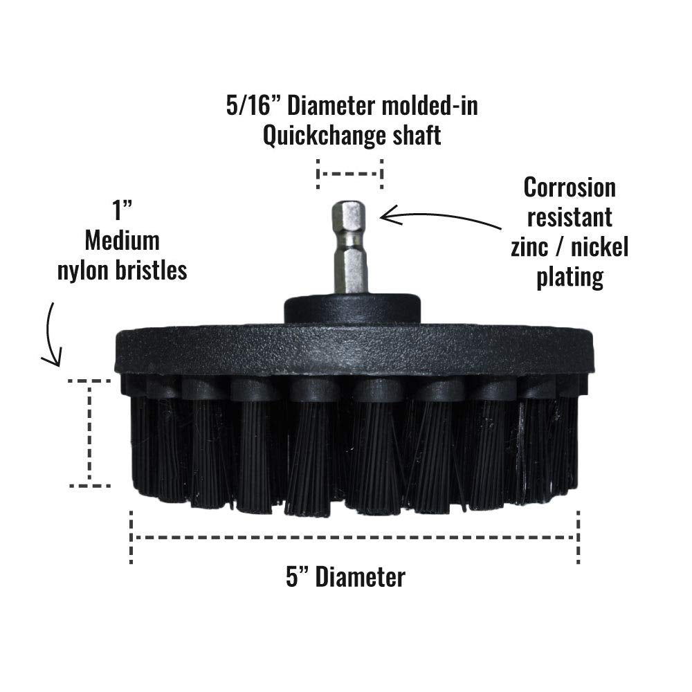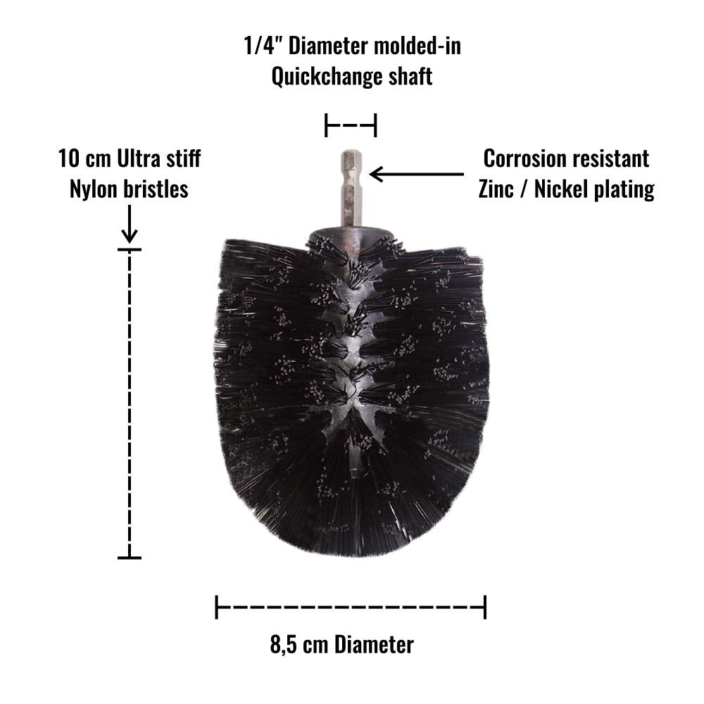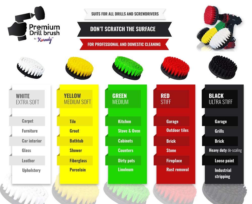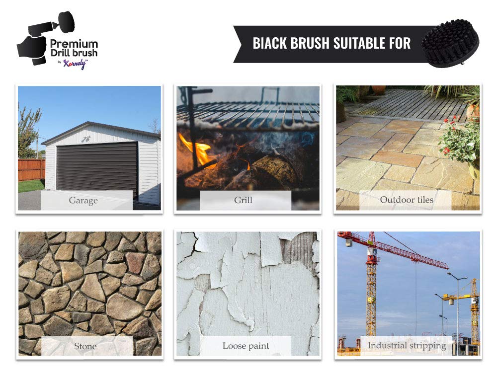 Kornely Premium Drill Brush Professional - Ultra Hard 5 Piece Set (13/10/8.5/5cm Brushes + 15cm Extension) | Scratch-Free Cleaning Brush for Concrete, Grill, Stone, Brick, Exterior Tiles
