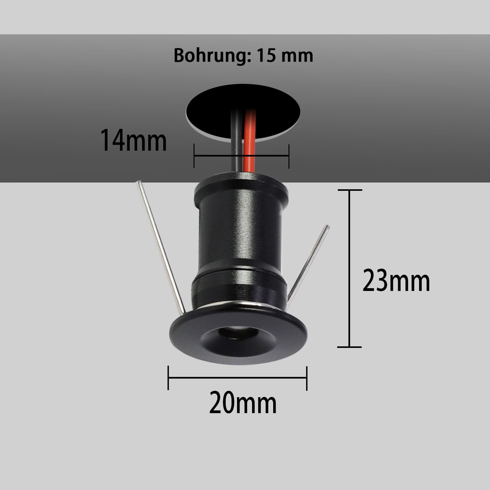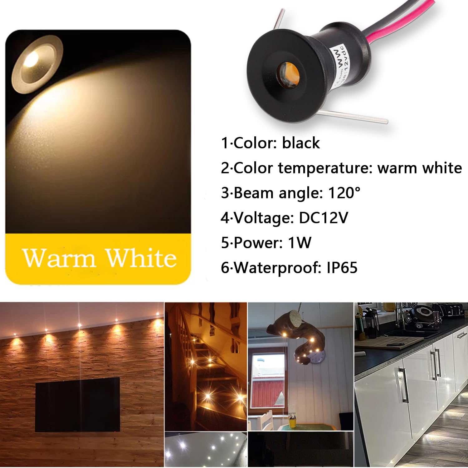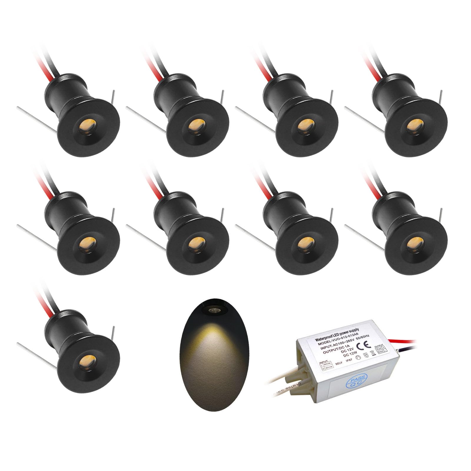 kpslucerna Mini LED Spot recessed ceiling light 9 pieces 12V 1W, the built-in lamp, IP65 spot, Built-in ceiling light for kitchen, stairs, closet, hallway (Black cover warm white 120°)