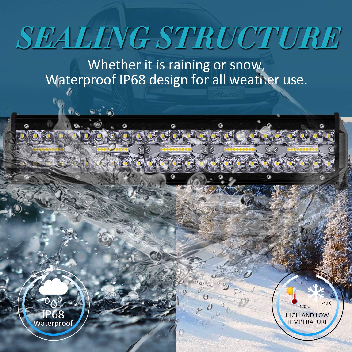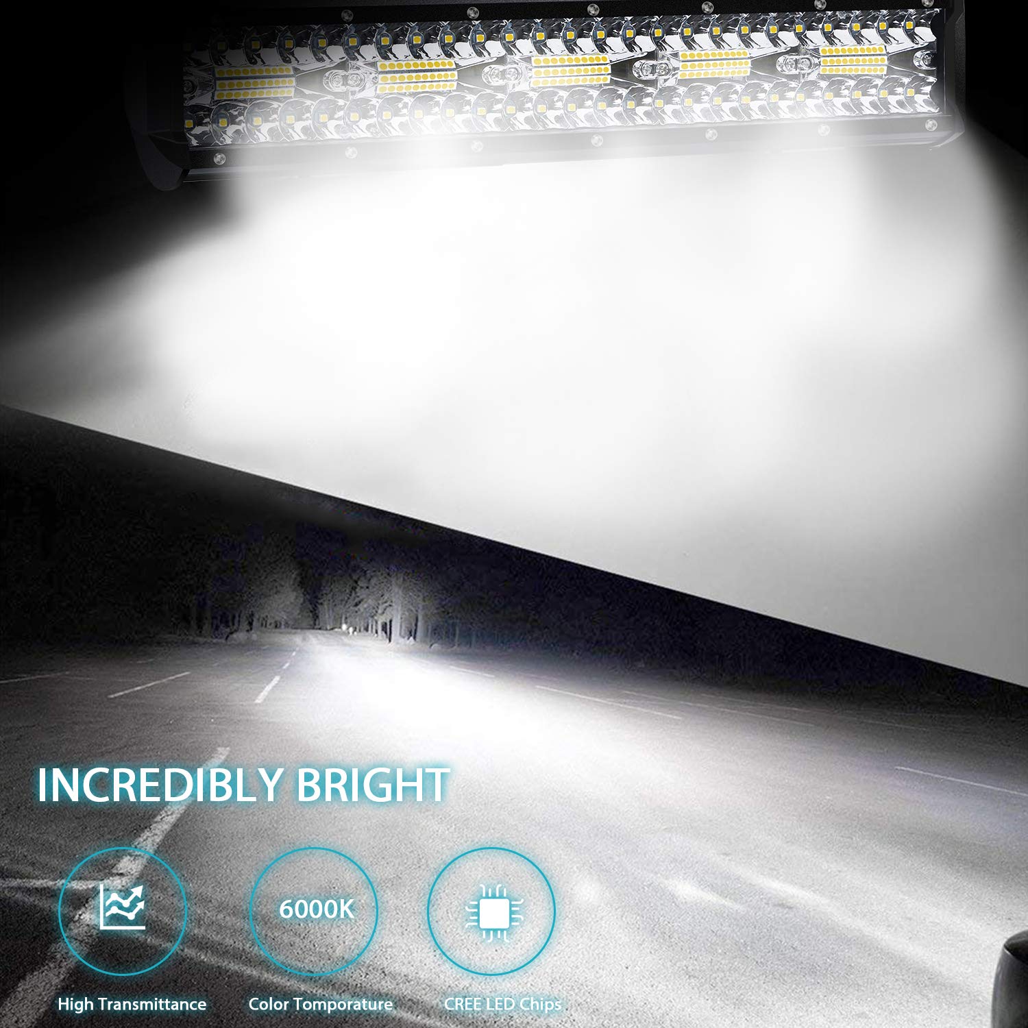 Kraumi LED auxiliary lights, 15 inch 320W Cree LED work lights 32,000lm LED headlights 12V car headlights Offroad floodlight Waterproof IP68 work light.
