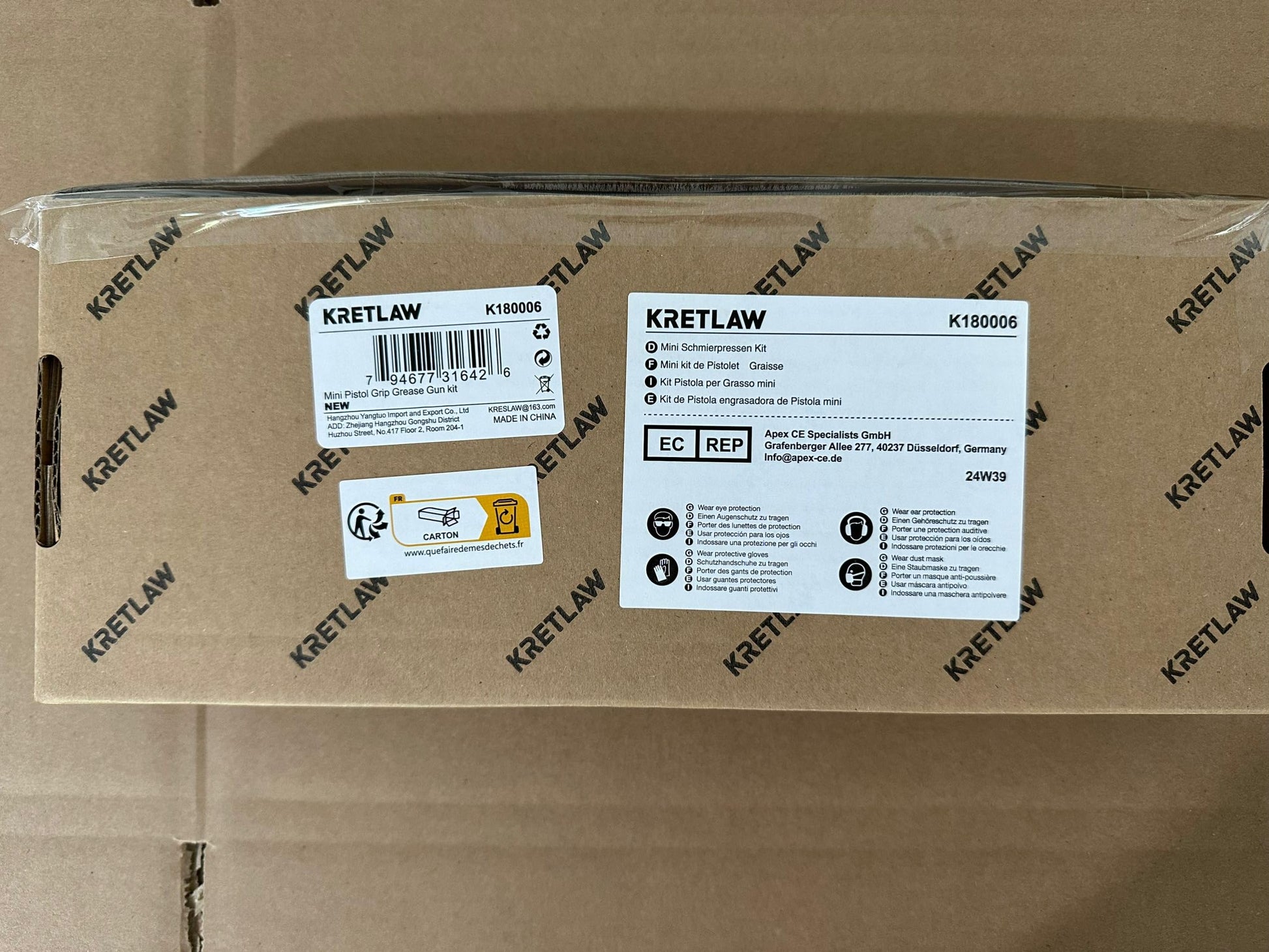["UPDATED GREASE GUN SET: The KRETLAW grease gun set comes with more practical tools, including a small grease gun (3000 PSI), 2 pieces of 3OZ (85g) grease cartridges, 1 piece of extension tube, 1 piece of 12\" (305mm) flex hose, 1 piece of 4-jaw coupler, 1 piece of nozzle, 1 piece of extension adapter, and a pair of reinforced PVC gloves.","VERSATILE NOZZLES: The KRETLAW grease gun set offers three different nozzles that seamlessly fit a variety of applications from vehicles, tractors, and RVs to automobiles, PTO shafts, steering cylinders, universal joints, suspension components, ball joints, lawn mowers, chassis, and drive shafts.","STURDY & REINFORCED GREASE GUN: Made of high-quality, heavy-duty die-cast aluminum, the pistol grip grease gun ensures a sturdy construction that can withstand a maximum operating pressure of 3000 PSI, ensuring leak-free performance and durability.","EASY GREASE LOADING: Experience seamless grease delivery with a combination of a sturdy T-handle plunger rod, a powerful spring, and a high-pressure piston O-ring, providing an ultra-smooth grease injection for effortless and efficient operation.","NON-SLIP HANDLE: The ergonomic handle with a non-slip surface allows for comfortable, quick, and controlled squeezing every time."]