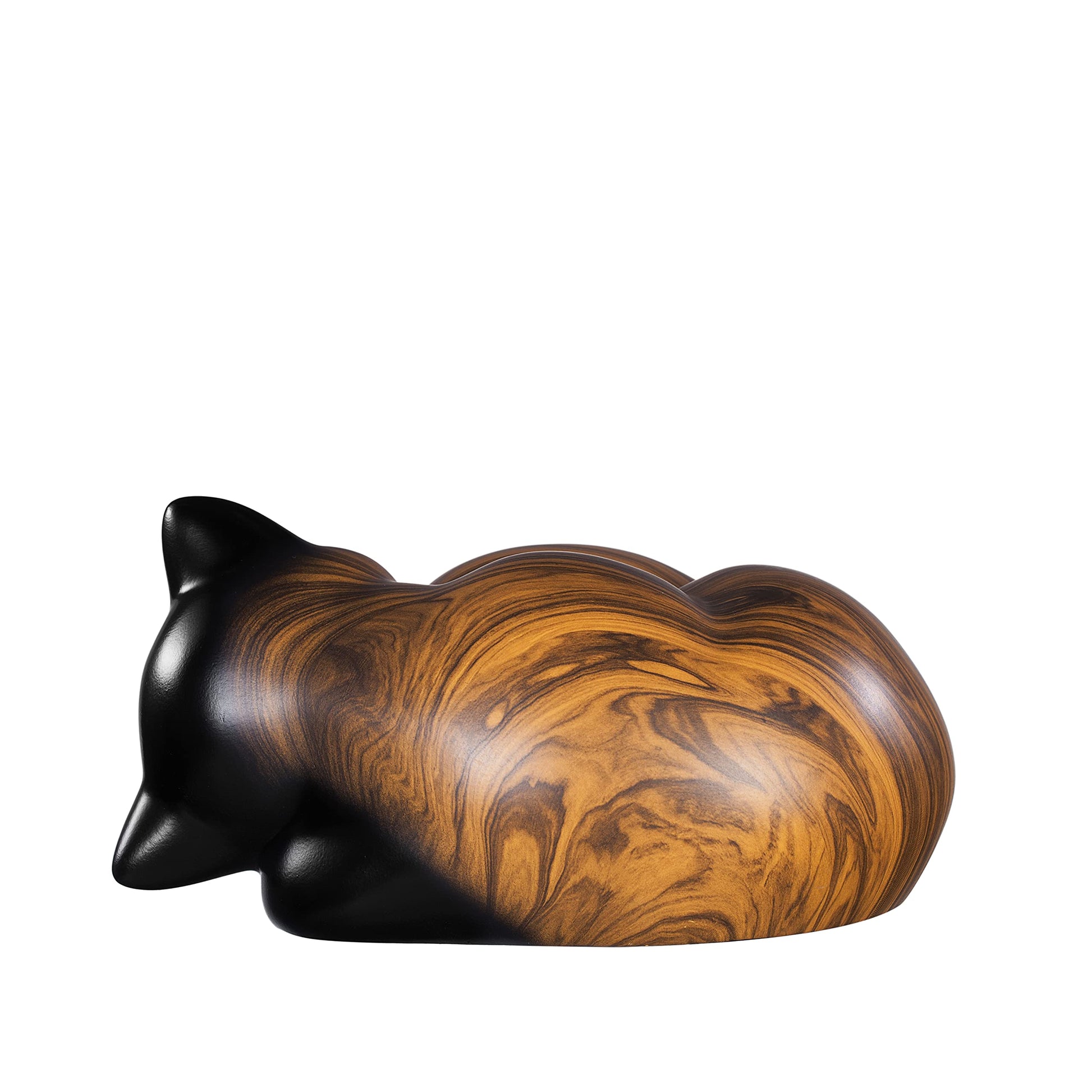 "This cat-shaped urn is designed to provide a suitable, comfortable, and warm resting place for your beloved cat. It is durable and sturdy and will give the dear departed a fitting new home."