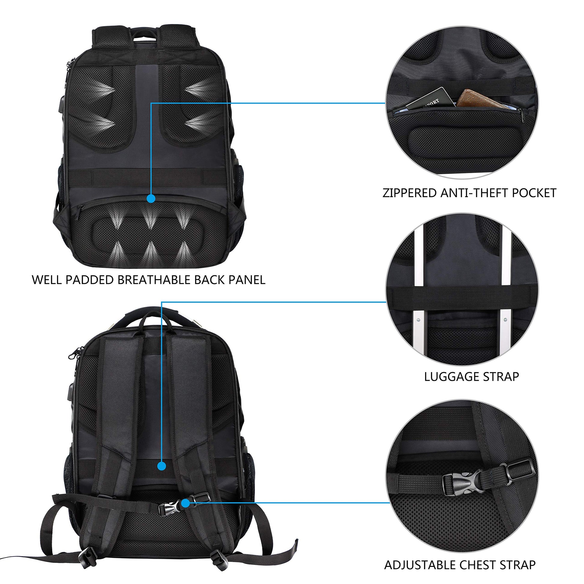 DURABLE & COMFORTABLE: This practical backpack comes with a sturdy handle and a steel cable at the top for carrying. Side compression straps keep the exclusive backpack in any desired size. This laptop backpack is large and sturdy, ideal for college, travel, hiking, camping, business, and outdoor activities. This backpack is perfect for BACK TO SCHOOL!"
