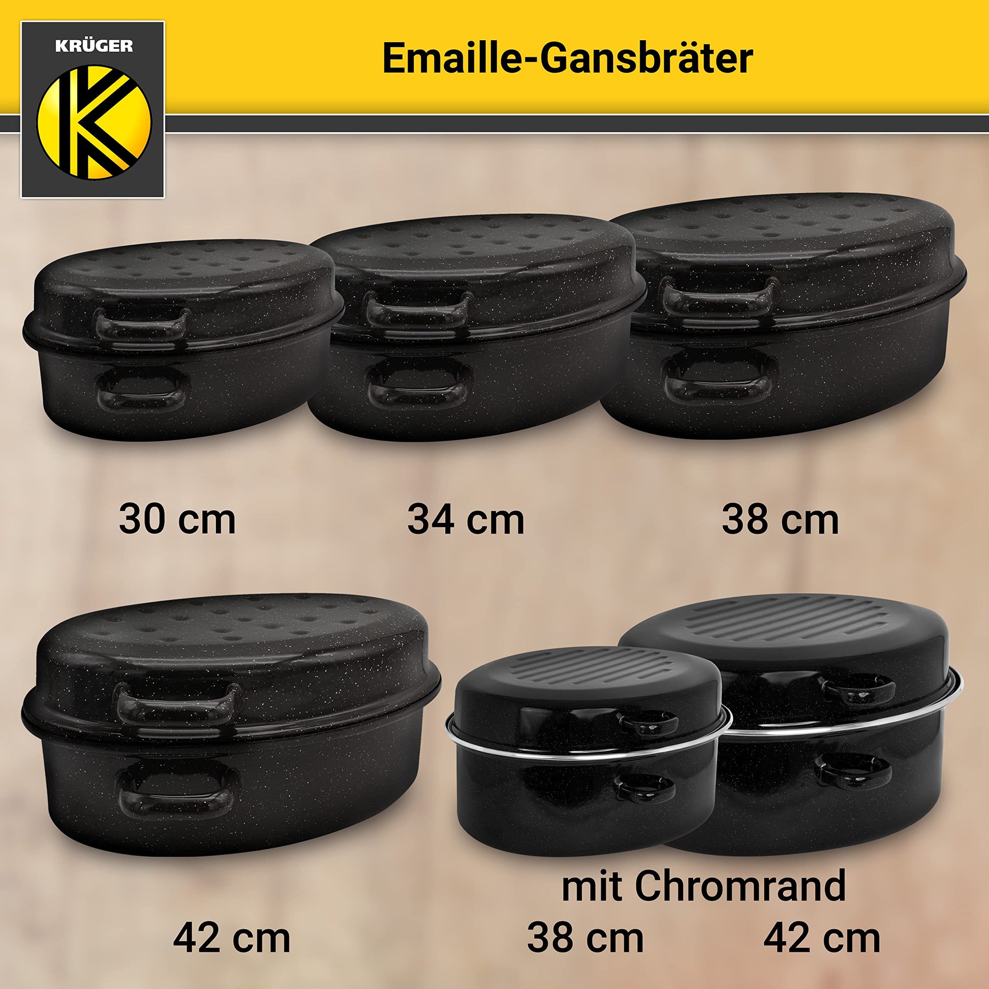 Krüger enameled roasting pan with drip lid - high-quality roaster - suitable for all types of stoves - excellent for roasts and poultry (enamel - black-white speckled (42 x 32 cm))