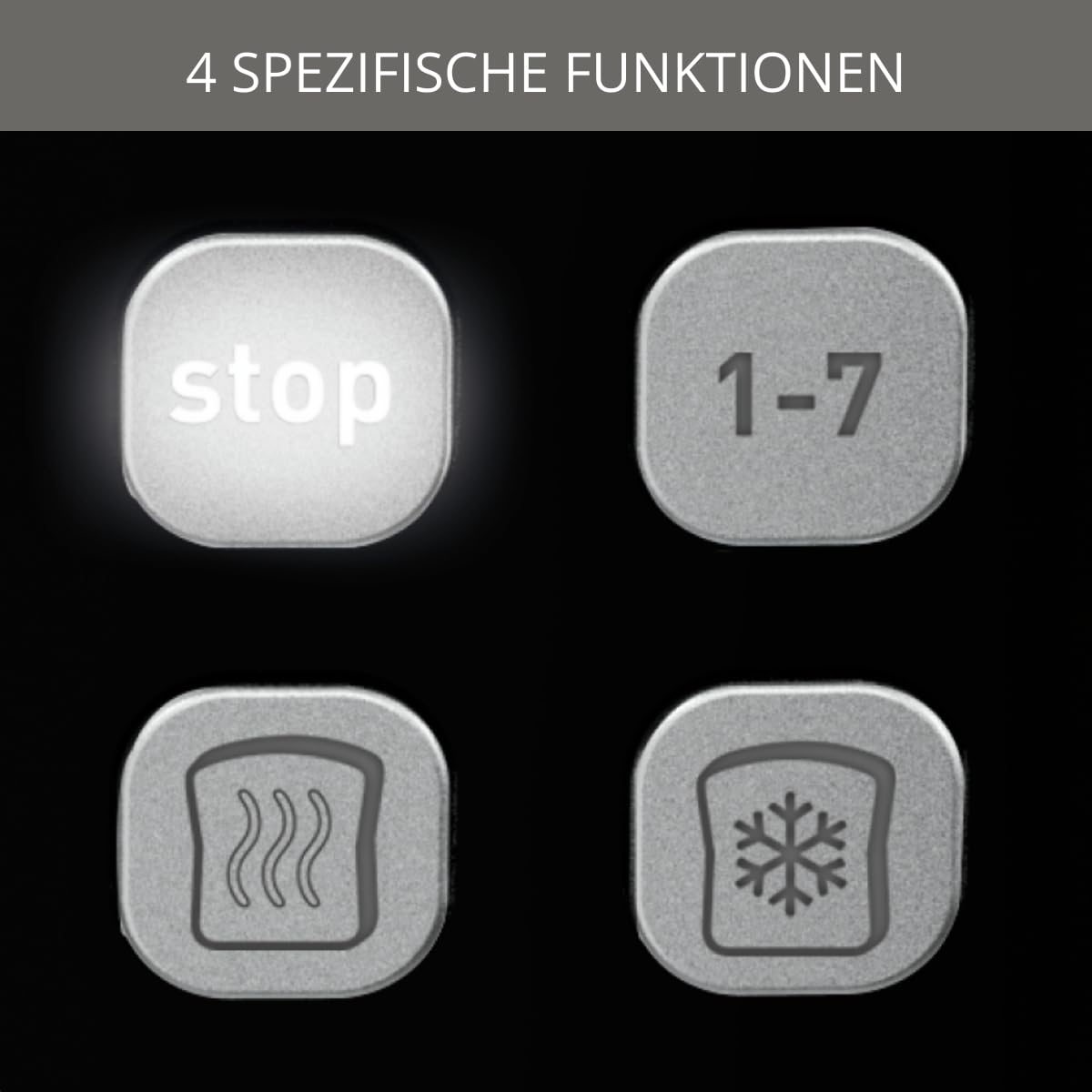 ["7 browning levels and favorite settings for toast just the way you like it","Integrated digital display with digital countdown showing exactly how long it will take","3 functions at the touch of a button: stop, defrost, and reheat with light indicators","Variable slot width for automatic centering of bread depending on thickness","Removable crumb tray and lift mechanism for easy toast removal","Lift mechanism for easy toast removal: even with the smallest slices of bread"]