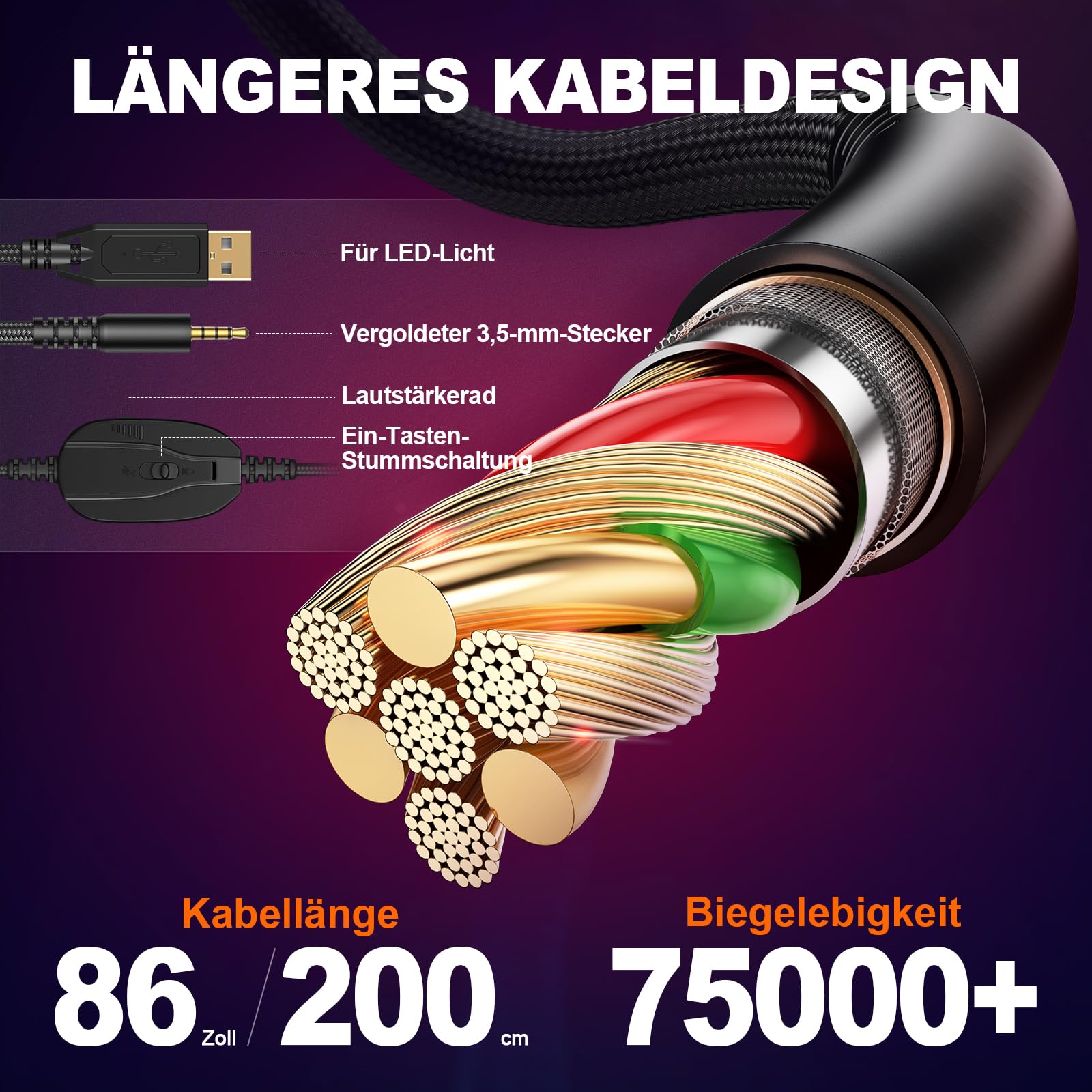 "One-button volume control: The Krysenix Gaming Headset features a high-strength, tangle-resistant 89-inch braided cable. It also has a rotary volume controller and a one-button microphone mute function. The volume button on the PC headset, along with the microphone icon for quick mute, provides convenient control of chat and game audio.",