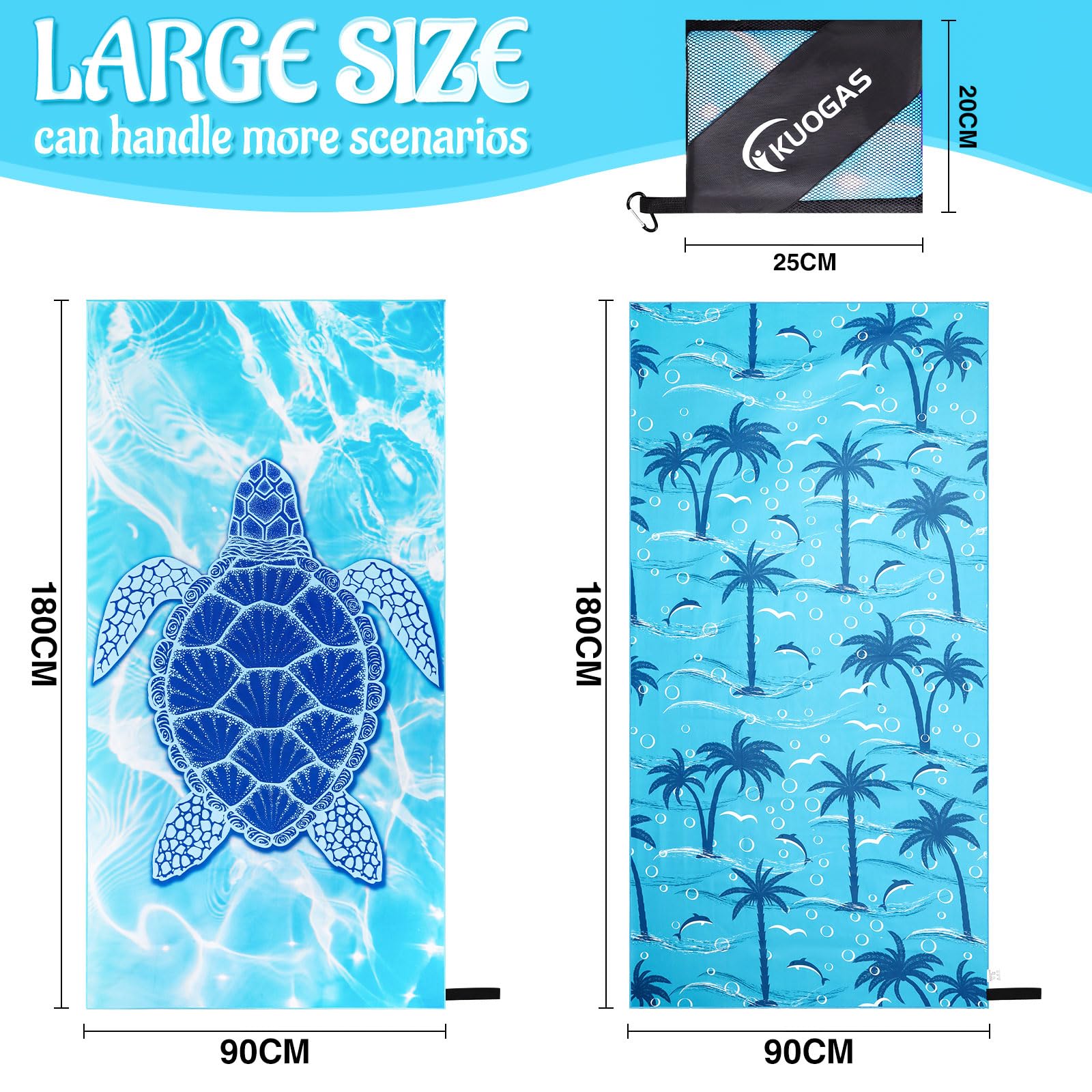 KUOGAS beach towel XXL 2 pack 90x180 cm, large quick-drying microfiber towel, sand-free beach towel, beach blanket women's beach towel