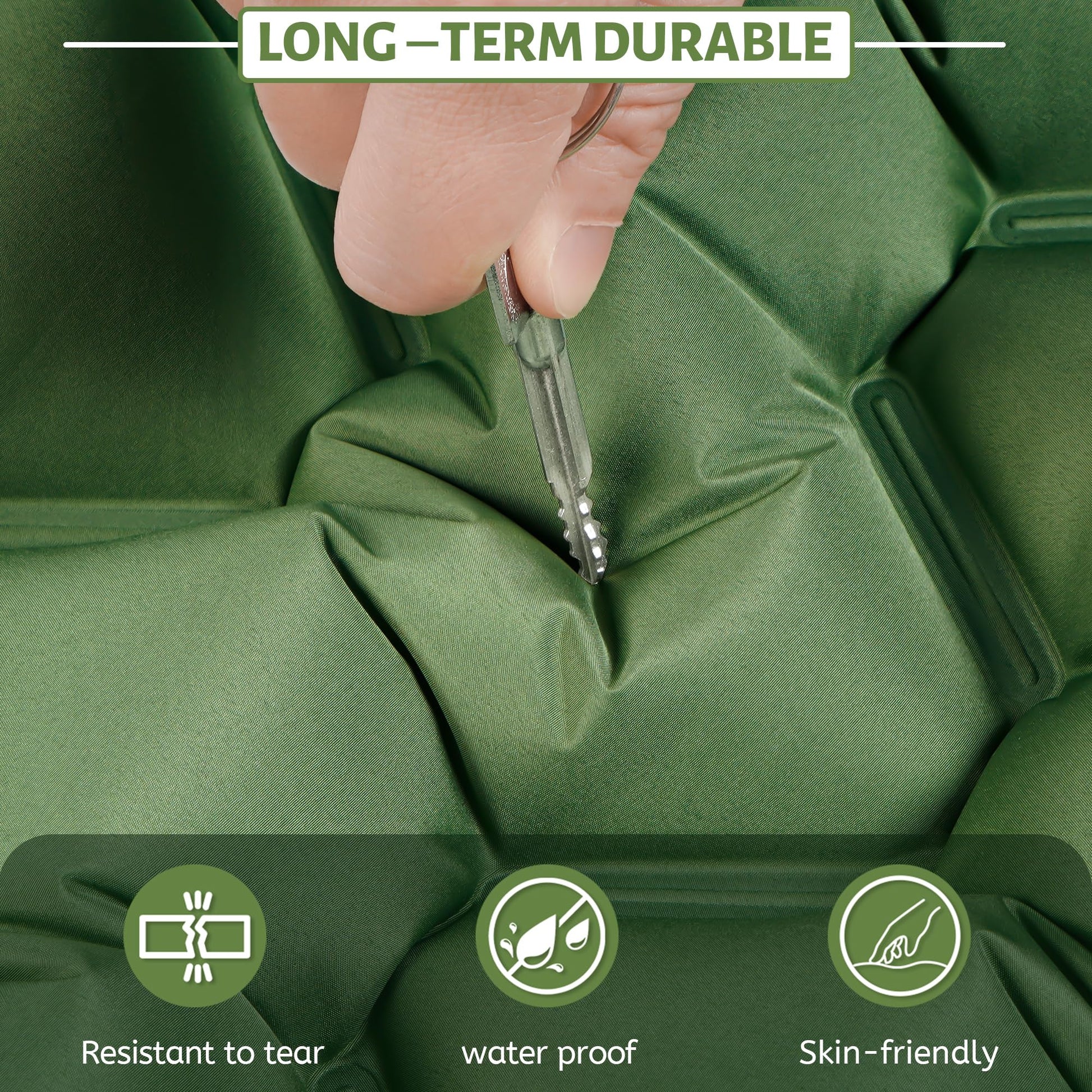 "🛡 DURABLE AND STURDY: The ultralight sleeping mat is made of tear-resistant 40D nylon and inner TPU composite material, waterproof and durable – perfect for any situation.",