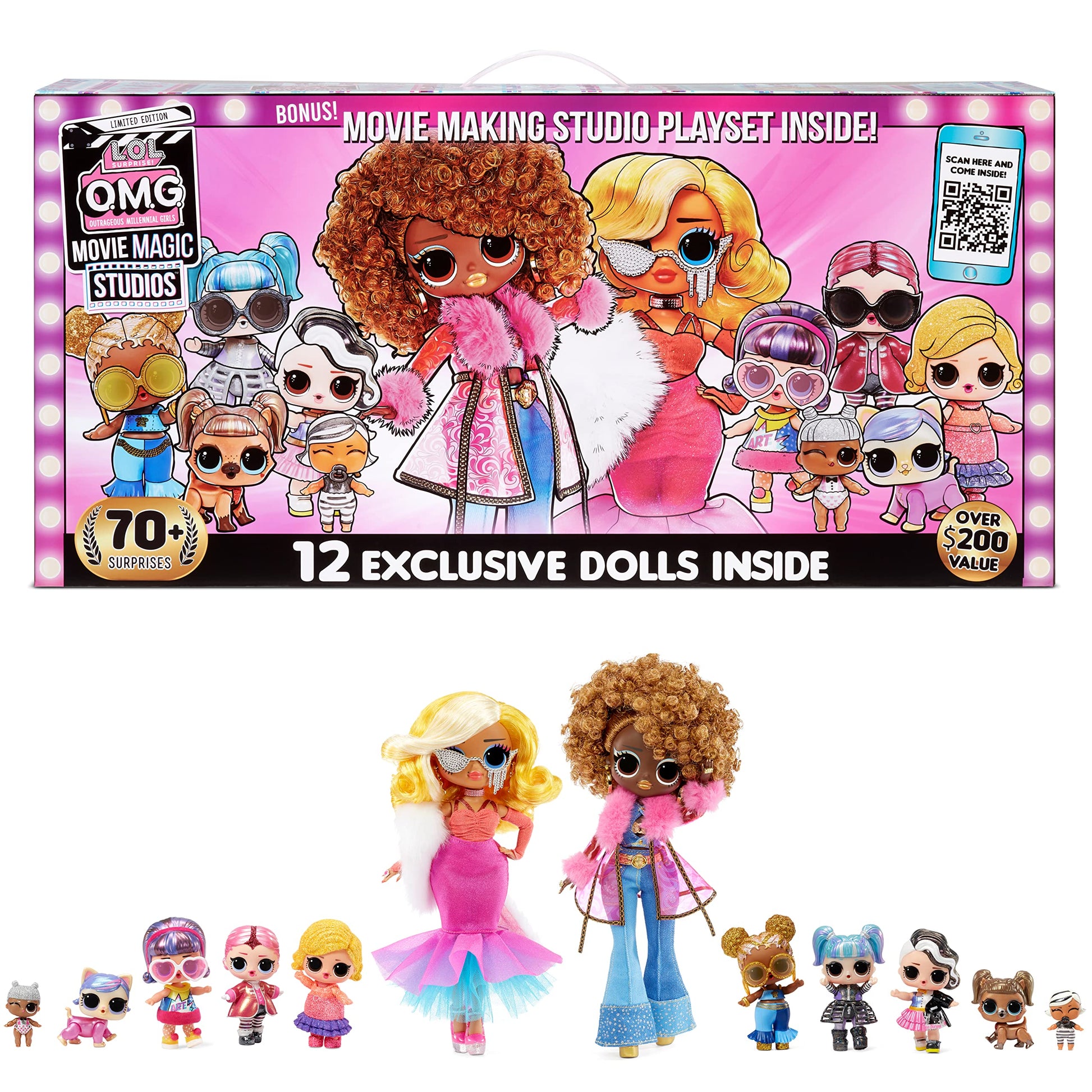 ["MORE THAN 70 SURPRISES - LOL Surprise OMG Movie Magic Studio includes over 70 surprises to unbox, including 12 LOL dolls, a greenscreen, accessories, and everything you need to make your own LOL Surprise movie. "Action!"", "Lights, Camera, Action - Attach the phone camera to the tripod, dress the Movie dolls with their stunning features, styled hair, and fancy looks in their costumes and accessories, put them in the scenery, and film your story", "3D UNBOXING EXPERIENCE - Get ready for the ultimate movie playset and enjoy an exciting 3D unboxing experience with the LOL Surprise OMG Movie Magic Studio. The packaging transforms into a movie playset with 4 sets ready for the actors", "LOTS OF FUN - Includes 2 OMG fashion dolls, 6 LOL Surprise dolls, 2 pets, 2 Lil Sisters, movie-themed outfits and accessories, a greenscreen, a tripod for the phone camera, 4 movie sets. A perfect set for future filmmakers", "THE PERFECT GIFT - A whole film crew, 4 sets, a greenscreen, wild outfits and accessories make the OMG Movie Magic Studios the perfect gift for birthdays or other special occasions for boys and girls aged 4 and up"]