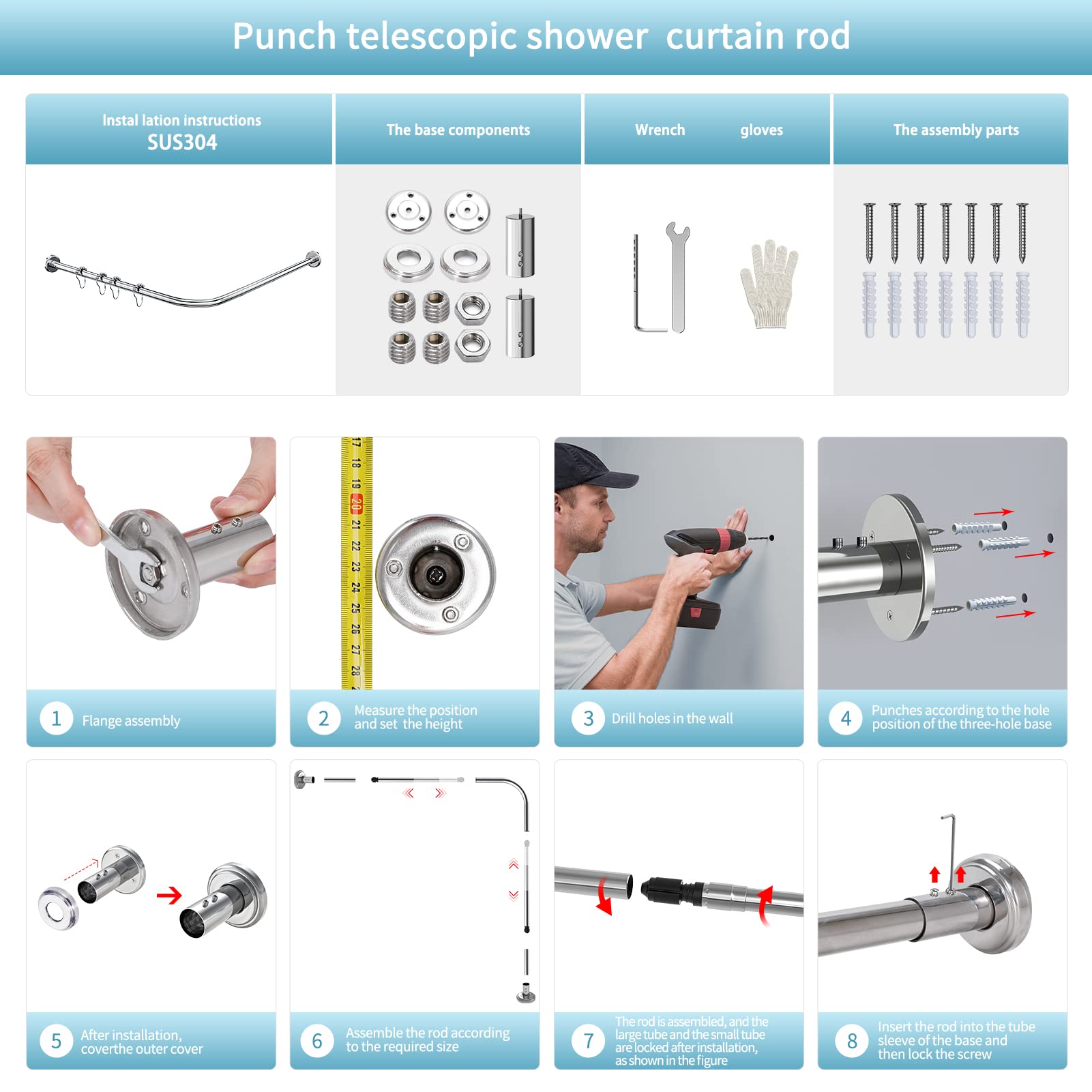 πβ We provide installation steps with pictures and text so you can easily and quickly install the L-shaped shower rod, saving you time.",