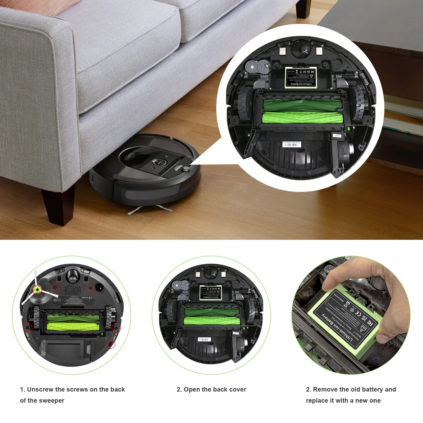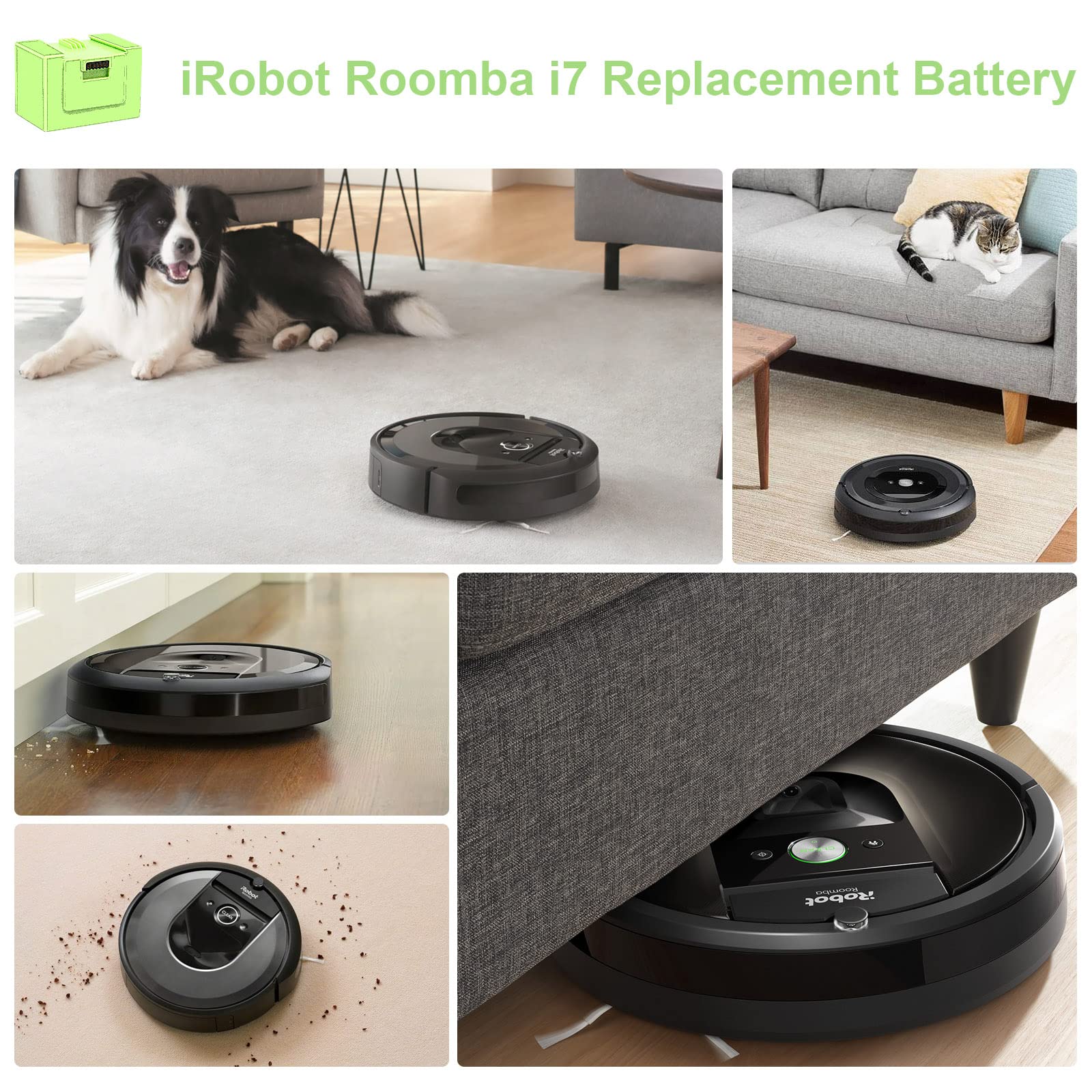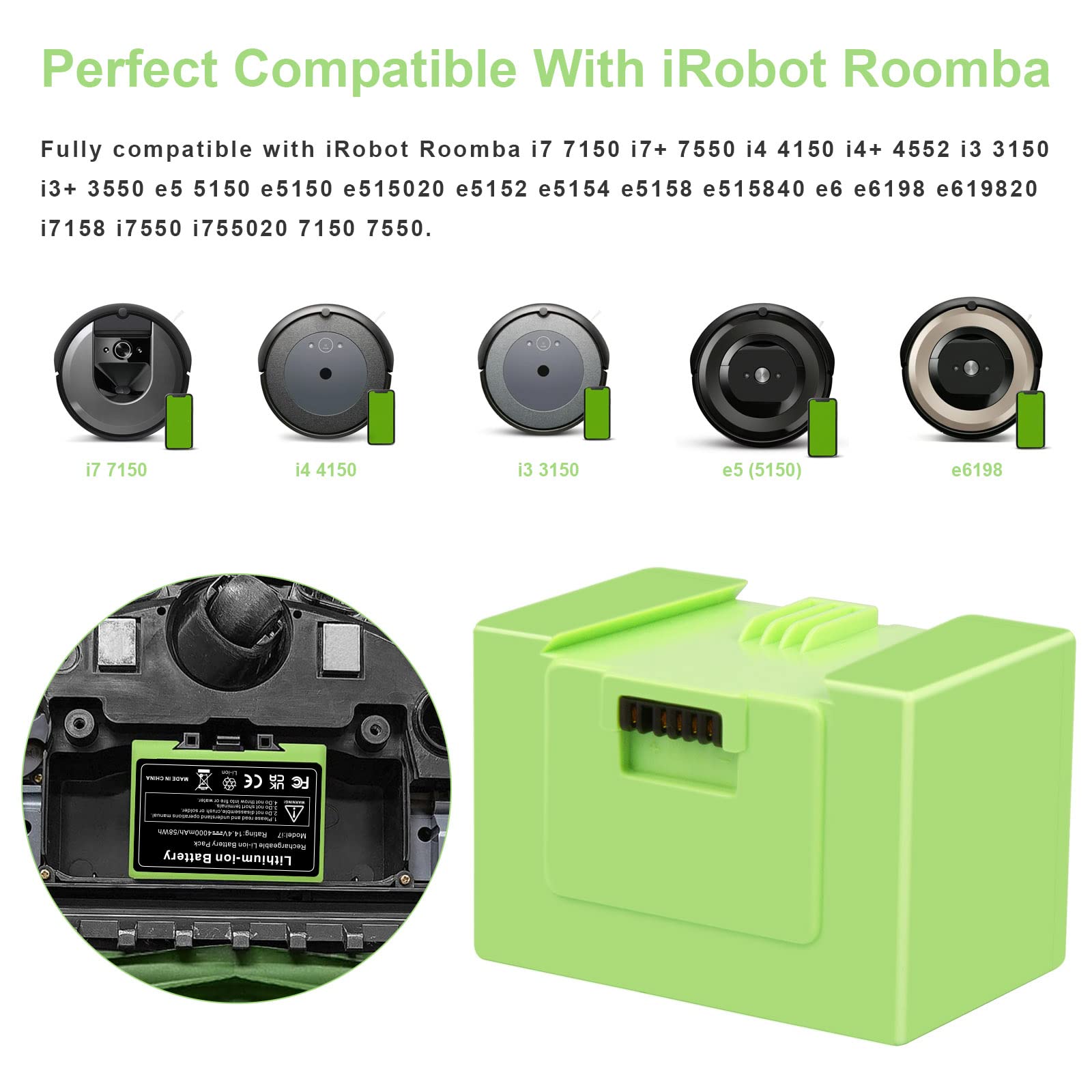 "Perfectly Compatible: Fully compatible with iRobot Roomba i7 7150 i7+ 7550 i4 4150 i4+ 4552 i3 3150 i3+ 3550 e5 5150 e5150 e515020 e5152 e5154 e5158 e515840 e6 e6198 e619820 i7158 i7550 i755020 7150 7550. Replacement battery No.: 4624864, ABL-D1, ABL-IT81ba.