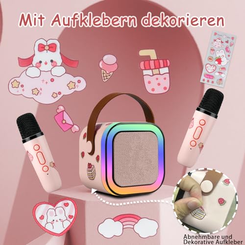 LAMJAD Karaoke Machine for Kids with 2 Wireless Microphones, Portable Bluetooth KTV System with LED Lights and Voice Effects, Gifts for Ages 3-12 Children (Pink)