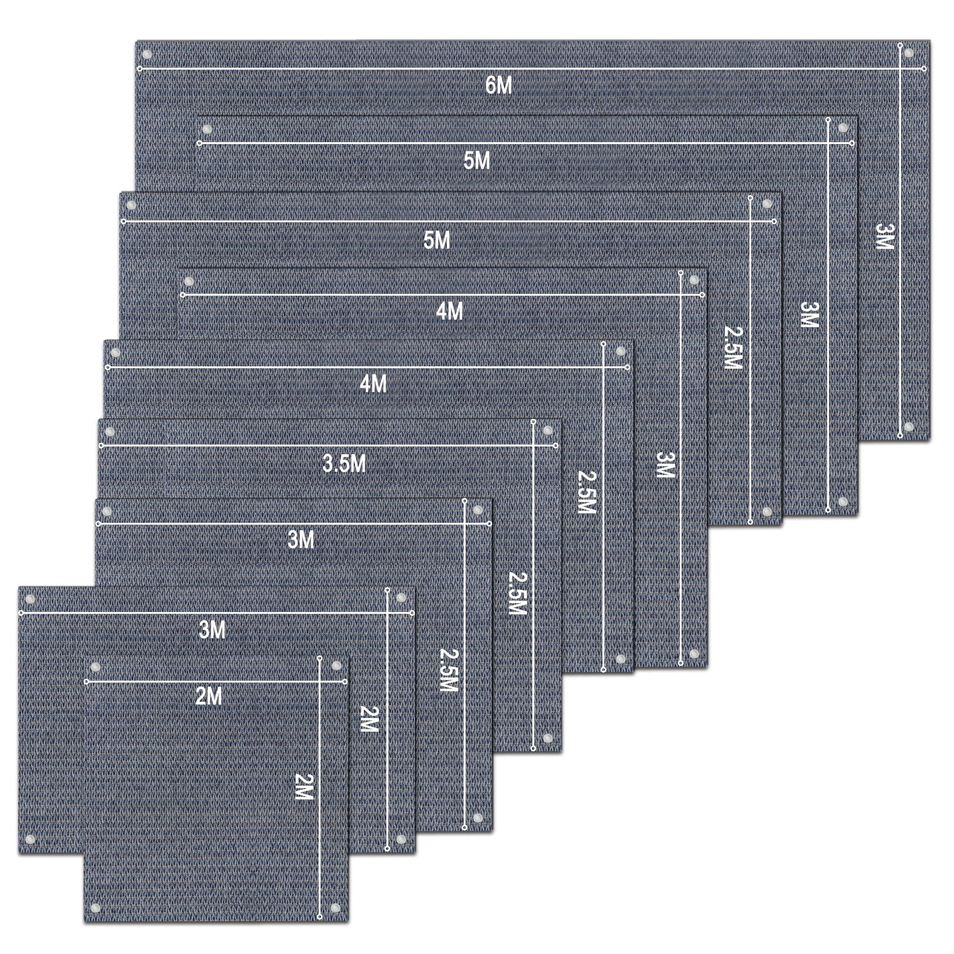 "Durable Material: This camping mat is made of HDPE 10.28 oz/sqft, sturdy and durable, non-slip, moisture-resistant, durable and dirt-repellent. It also resists UV rays, does not easily fade, and does not tear.","Practical Design: This portable camp mat has 8 aluminum loops and 10 ground stakes at the edges to securely fix it on different terrains. After easy installation, it can be conveniently used.","Versatile Application: Camp groundsheet / RV front yard / balcony lounge / beach picnic mat / pool dining area / indoor play mat – a mat for the whole family outdoor life.","Portable Storage: This sun protection mat is flexible and easy to fold, fits in our zippered carrying bag, can be carried with one hand for convenient transportation at any time.","Customized Size and Color Selection: 9 sizes + Blue-Gray / Charcoal-Black. The classic blue-gray/charcoal-black appearance is stylish and modern, creating a warm and pleasant picnic experience. We offer 9 different sizes of sun protection mats to meet your various needs."