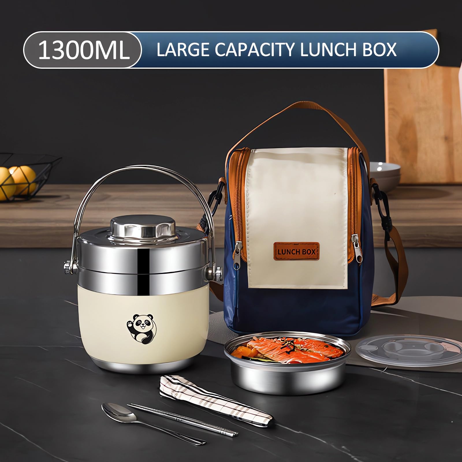 LANMOU 1300ml food thermos, stainless steel, thermal lunchbox for kids and adults, leakproof, includes spoon and carrying bag, keeps food hot for 6h / cold for 12h.