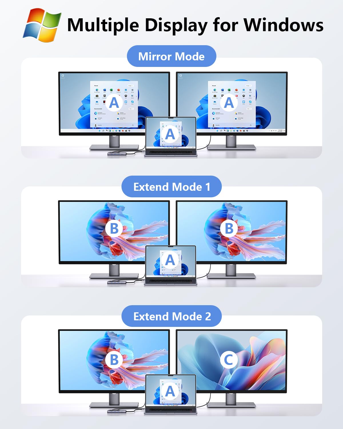 ["Wide Compatibility"] This USB C to dual HDMI adapter works with most Type C laptops with Thunderbolt 3/4 on the market, such as MacBook Pro/Air (2023/2022/2021/2020/M1/M2, etc.), iPad Pro 2022/2021/2020, iMac models from 2017. iPhone 15 Series, Samsung Chromebook Pro, Dell XPS 13 15, Lenovo Yoga 900/910, HP Spectre X360, Surface Book2, and more. Supported operating systems: macOS, Windows, Linux, Android, iOS, etc.