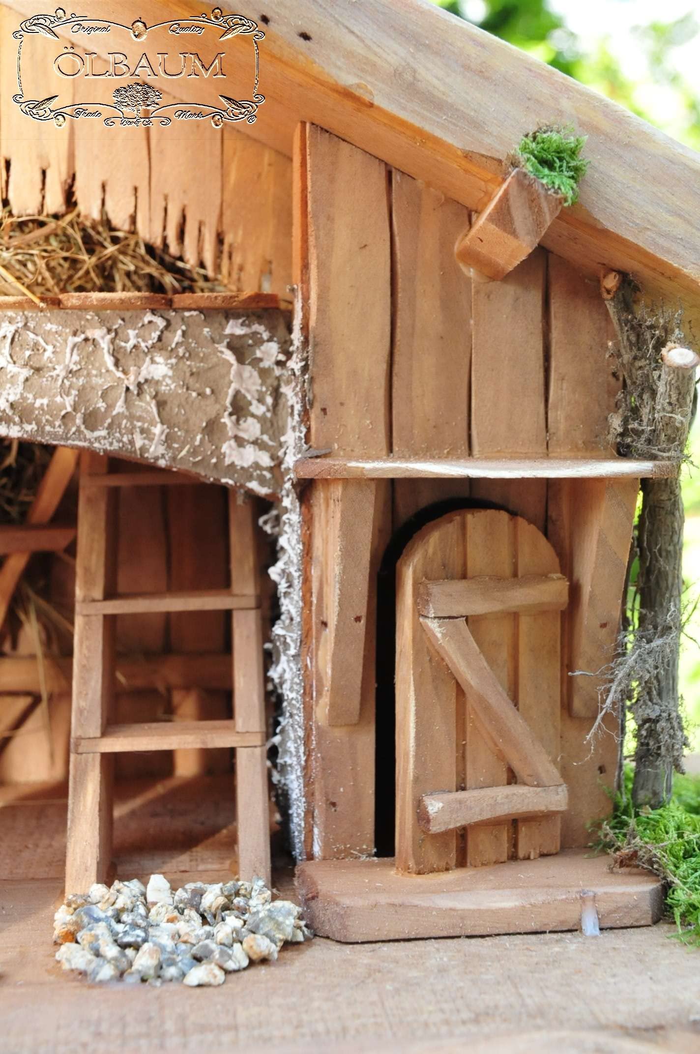["XL Christmas nativity scene made of solid wood, WITH ILLUMINATED WELL, triple-glued solid base plate, nativity stable","Size: approx. 24 inches W x 12-14 inches H x 10 inches D (delivered completely assembled), handmade individual production","with wooden shingle roof, lovely details and decorations such as well, pitchfork, feed holder, flour sack, tub...","COMPLETE with large, 12-piece PREMIUM figure set colored / stained in WOOD LOOK: Mary, Joseph, Baby Jesus in the crib, angel with golden wings, 3 Wise Men from the East, shepherd, ox and donkey, sheep","More nativity scenes & accessories on amazon in HUGE SELECTION: e.g. type in "BTV Nativity Accessories" above!"]
