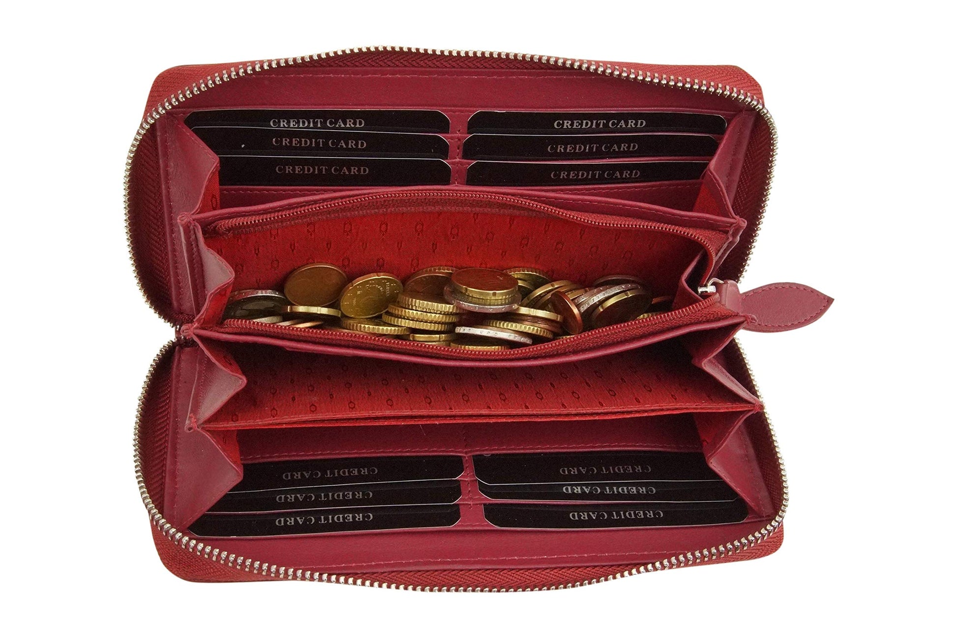 Large full leather women's wallet with RFID protection, zip all around, women's long wallet, purse wallet in genuine leather by LEAS, red 19.5x9.5x2cm (WxHxD)
