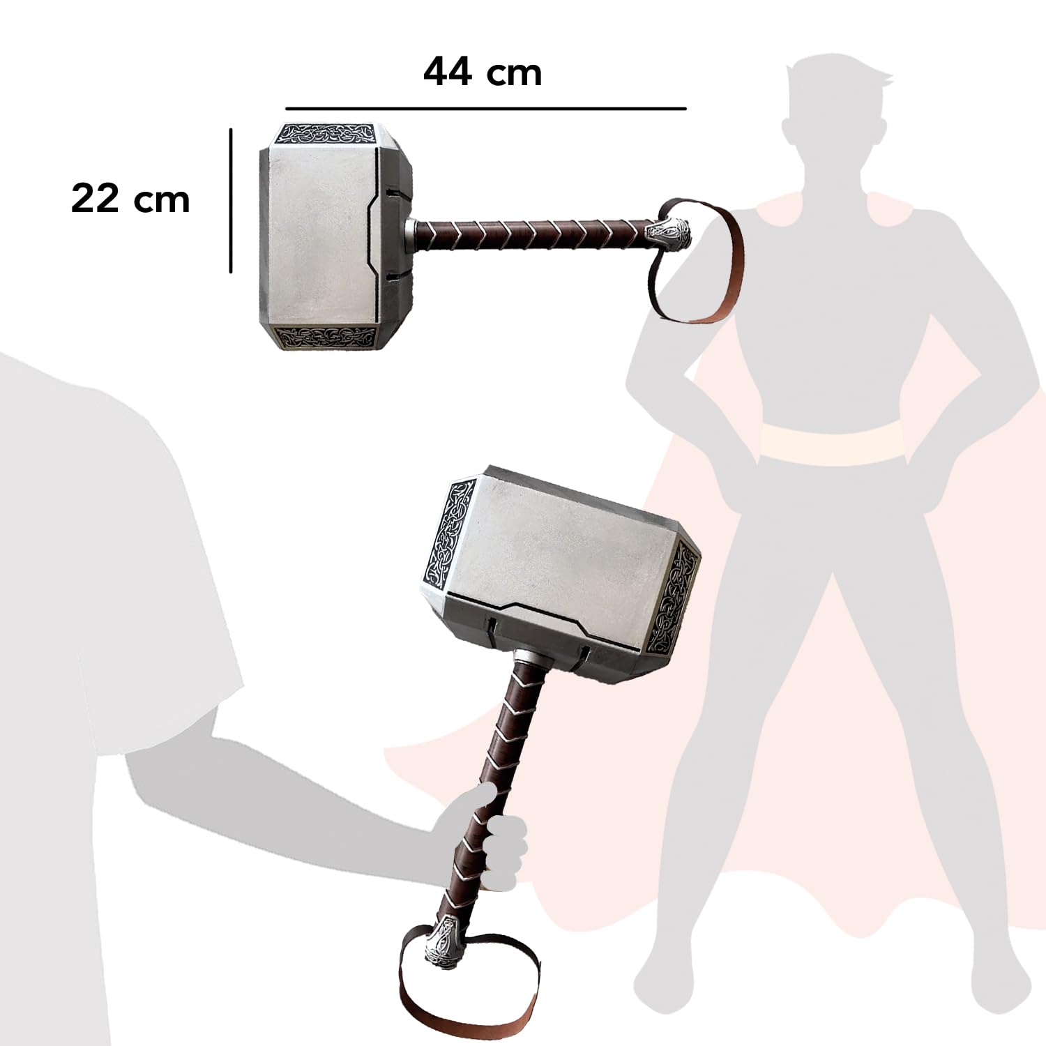 ["😱 🔪 COSPLAY: A fan of superheroes and Marvel? Then this ultra-realistic Thor hammer is perfect for you!", "👍 💡 FEATURES: Made of PU foam and resin, the hammer is lightweight and easy to handle. Dimensions: 44cm x 22cm.", "📅 🎊 OCCASIONS: A great costume for all occasions: birthdays, Halloween, costume parties, ...", "🏏 💪 RESISTANT: This accessory is indestructible and will not get damaged!", "🥇 🏆 REFERENCE: Original Cup is the reference for costumes in Europe!"]
