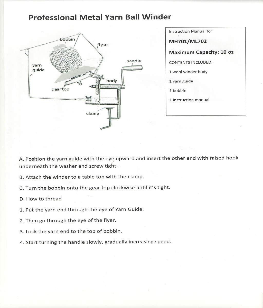 ["Yarn winder: Metal construction: sturdy construction, electrostatically painted body made of cast iron. Special metal material for gears, much less noise than metal gears.","Bobbin winder: Easy assembly: The metal jumbo yarn ball winder requires no tools for assembly.","Ball winder: Smooth edges - The edges of this machine are smooth and do not scratch the table.","Fast yarn: Makes 284 g center-pull yarn cakes, which is 2.5 times more than our smaller winder. Yarn winder: Makes center-pull cakes: Size: approx. 40 x 16 cm.","Tips: The color of some winders may slightly come off during transport, but this does not affect the use. If your item loses color, please do not leave a bad review. Please contact us first, we will offer solutions and try our best to meet your needs."]