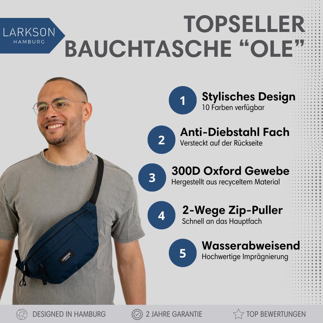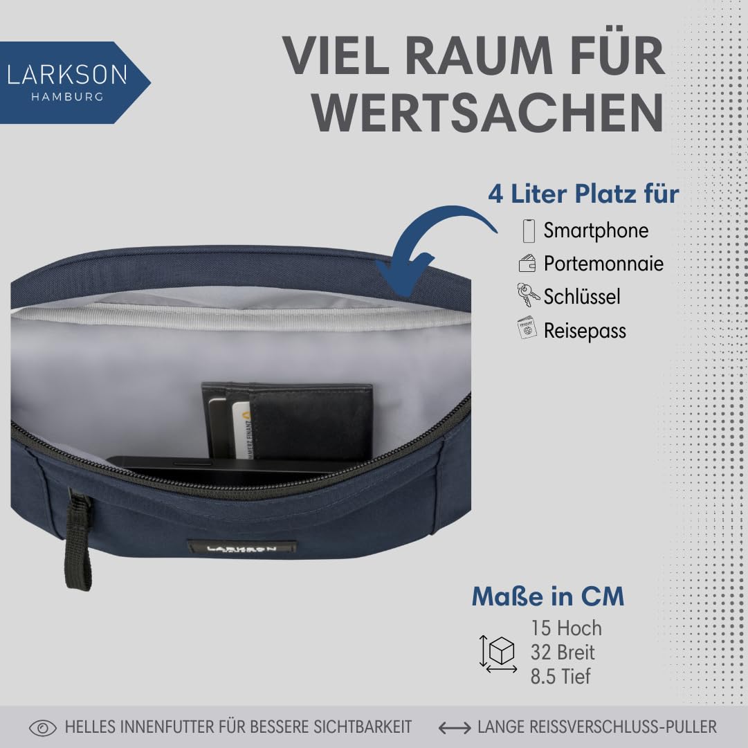 LARKSON Bum Bag Women & Men Blue - Ole - Hip Bag for Sports Outdoor City - Stylish Fanny Pack for Festival - Crossbody Bag with Strap - Water Resistant