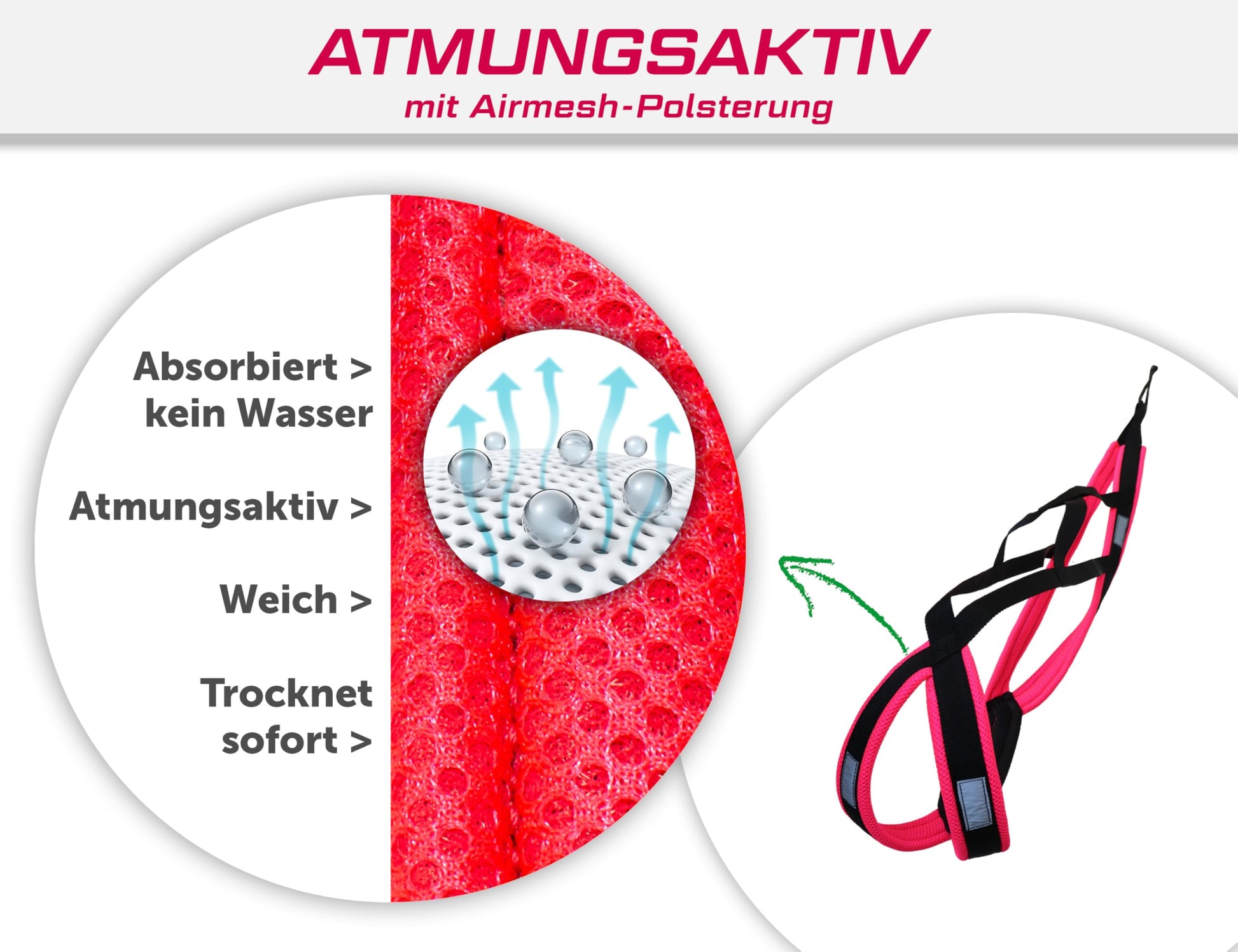 ["WHY LASALINE DOG PULLING HARNESS X BACK ? Our dog pulling harness is perfect for strong pulling dogs. The X Back harness design ensures even pressure distribution, stabilizes, supports, protects the back, and trains the back muscles. Exposed shoulders guarantee freedom of movement. The side-free chest area promotes completely free breathing. It fits snugly around the neck without restricting under tension and ensures a stable fit","DOG PULLING SPORTS HARNESS : The LASALINE dog pulling harness was designed for dog sports and is ideal for CANICROSS - BIKEJORING - SKIJORING - DOGSCOOTING or DOGSCOOTER - SLEDDING. This dog pulling harness is often referred to as a Canicross harness, sled dog harness, Husky harness or bicycle dog pulling harness. In addition, the dog pulling harness is recommended for mountain hiking or terrain marches, tours or long walks in the mountains!","MULTIFUNCTIONAL DOG PULLING HARNESS : This dog pulling harness is suitable for almost all breeds (not just for Huskies!). The LASALINE dog pulling harnesses guarantee a joyful experience with the four-legged friend for every dog lover, beginner, hobby athlete, professional! Depending on the dog sport in combination: Canicross harness dog + Jöringleine + Canicross belt / sled harness dog + towing line / Bikejöring harness + towing line + bike antenna / Dogcsooter for dogs + harness dog + dog pulling line.","INDIVIDUAL ADVICE FOR SIZE SELECTION : Please note that the values in the size chart may not always be accurate due to the variety of dog breeds, mixes, and body proportions. It can therefore happen that a different size fits than recommended in the table. Please contact us at any time for size advice if you are unsure, before and after the purchase, which size fits your dog. CUSTOMER SERVICE is our top priority!","HIGH QUALITY: Designed and manufactured in Europe! Very light, durable, robust, tear-resistant, and long-lasting! The LASALINE dog harness pulling harness has been perfected with years of design and cutting experience. The breathable padding ensures perfect heat dissipation for maximum performance, extra padded chest part with smooth and water-repellent surface protects fur and skin, prevents friction and hair loss, the reflectors provide more safety."]