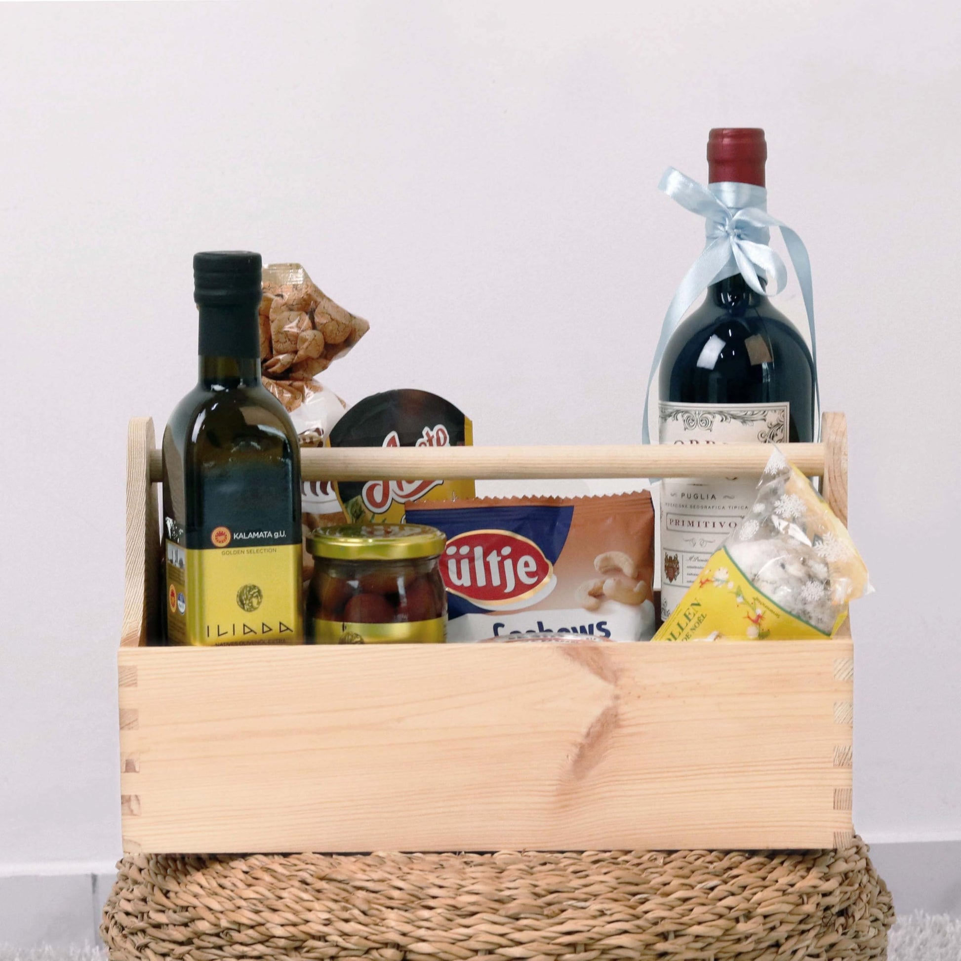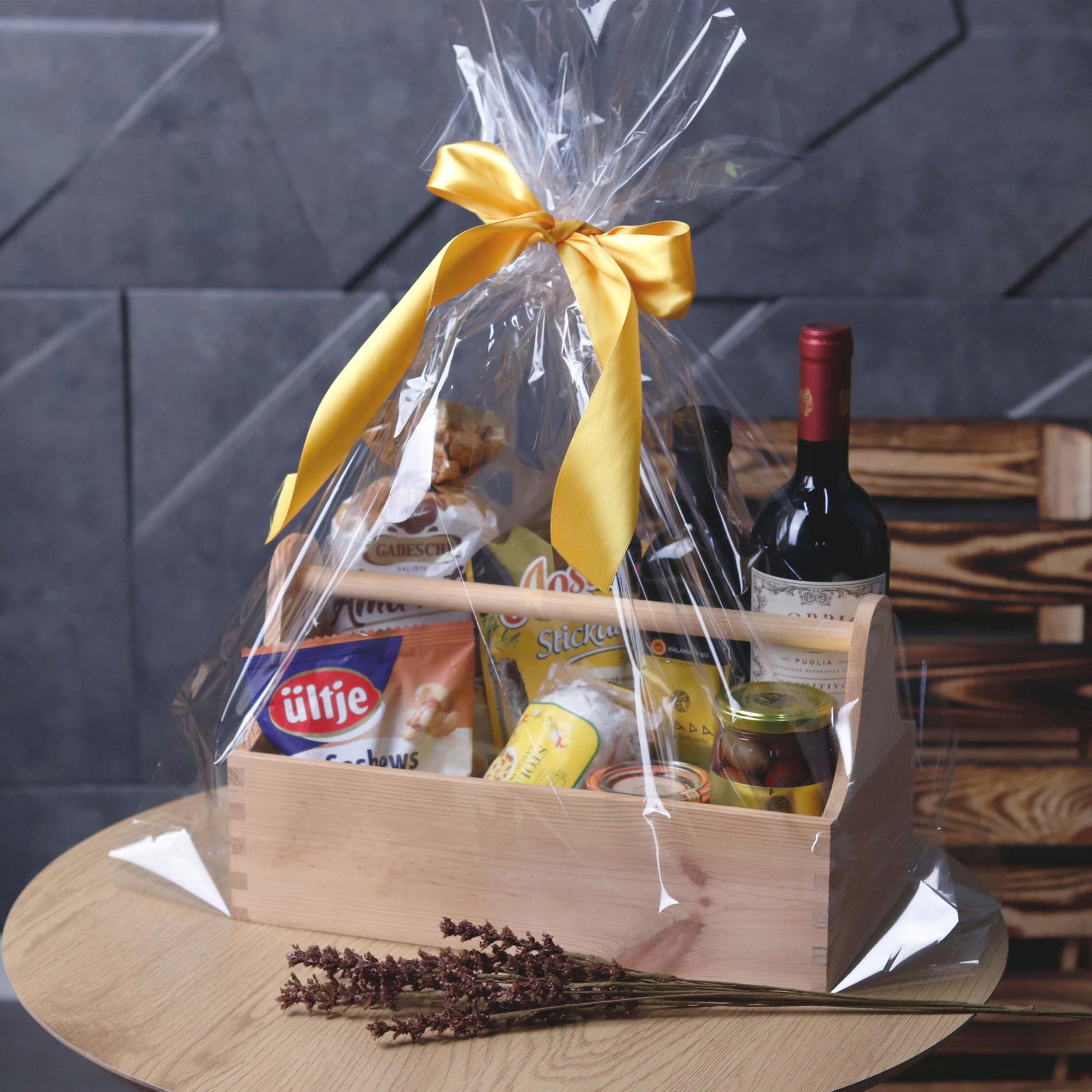 "To give away: Stylish and spacious gift packaging for Christmas and New Year's gifts. Original gift for colleagues, friends, and family. Beautiful gift basket to fill with selected treats."
