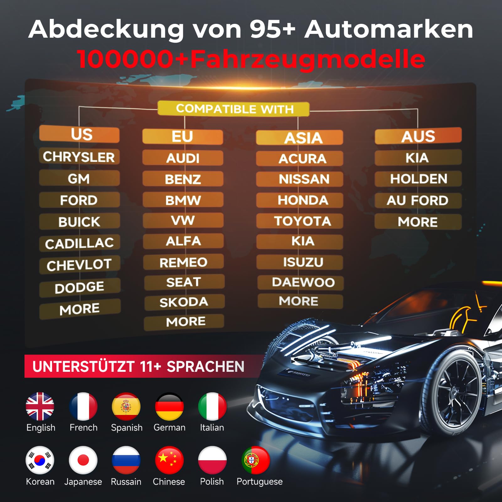"🚖[Wide Application, 99% vehicle coverage]: LAUNCH CRP123I V2.0 OBD-II diagnostic tools support Car Auth for FCA SGW to access 2018+ FCA SGW-equipped cars and are compatible with OBDII-equipped vehicles built after 1996, and it works on over 1000+ Vehicles. It covers OBD2/EOBD/KOBD&CAN protocols: Fit for VW, Audi, BMW, Seat, Honda, Toyota, Volvo, Jaguar, Land Rover, and so on. If you are not sure if the product is suitable for your vehicle, please contact our customer service for assistance."