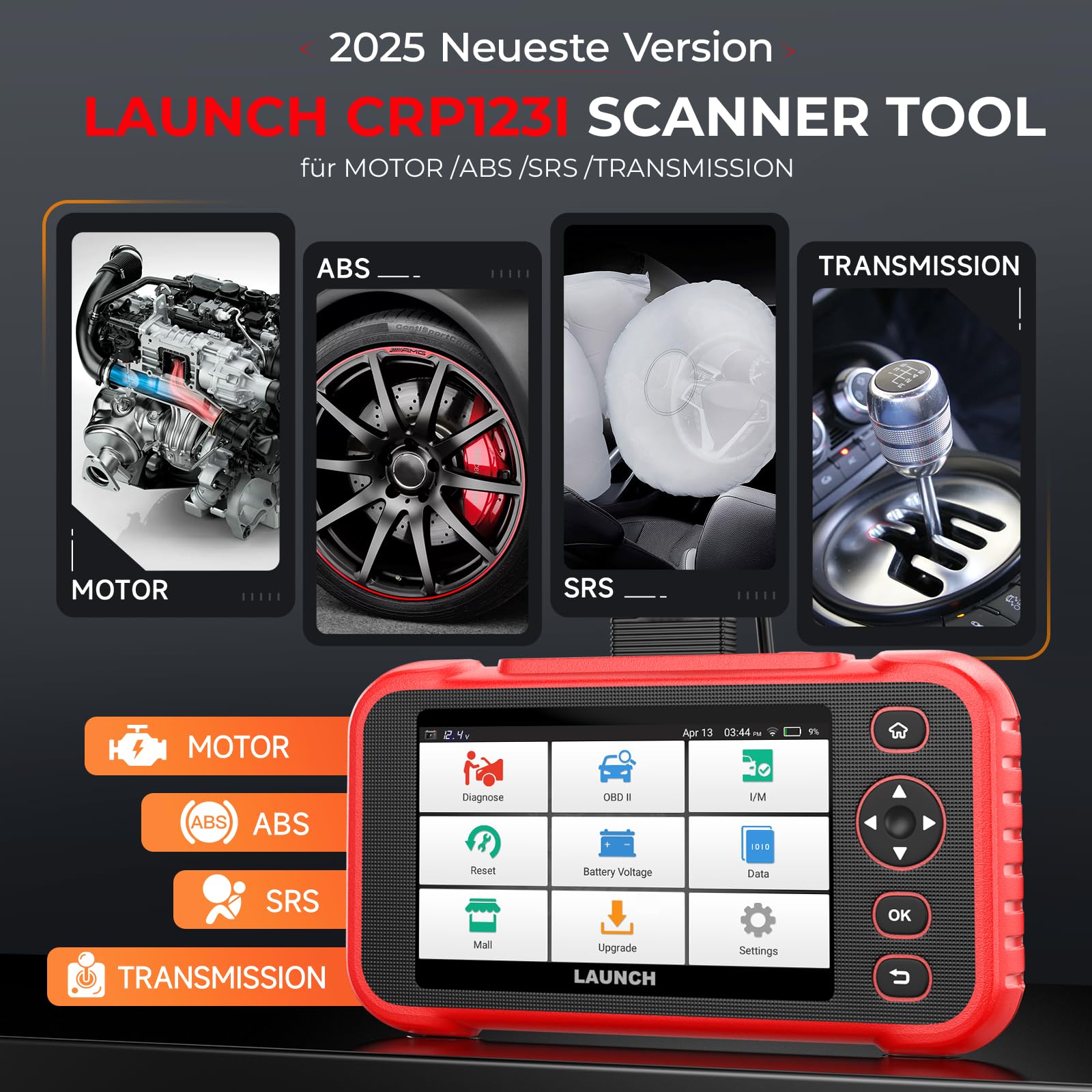 "🚕[Enhanced Engine/ABS/SRS/Transmission car diagnostic tool]: LAUNCH CRP123I V2.0 car diagnostic tool accesses 4 systems: Engine/ABS/SRS/Transmission, based on read error codes, displaying vehicle information and live data stream to identify problems, then clear the error code after fixing the issue. It helps keep your car in good condition all the time to ensure your driving safety."